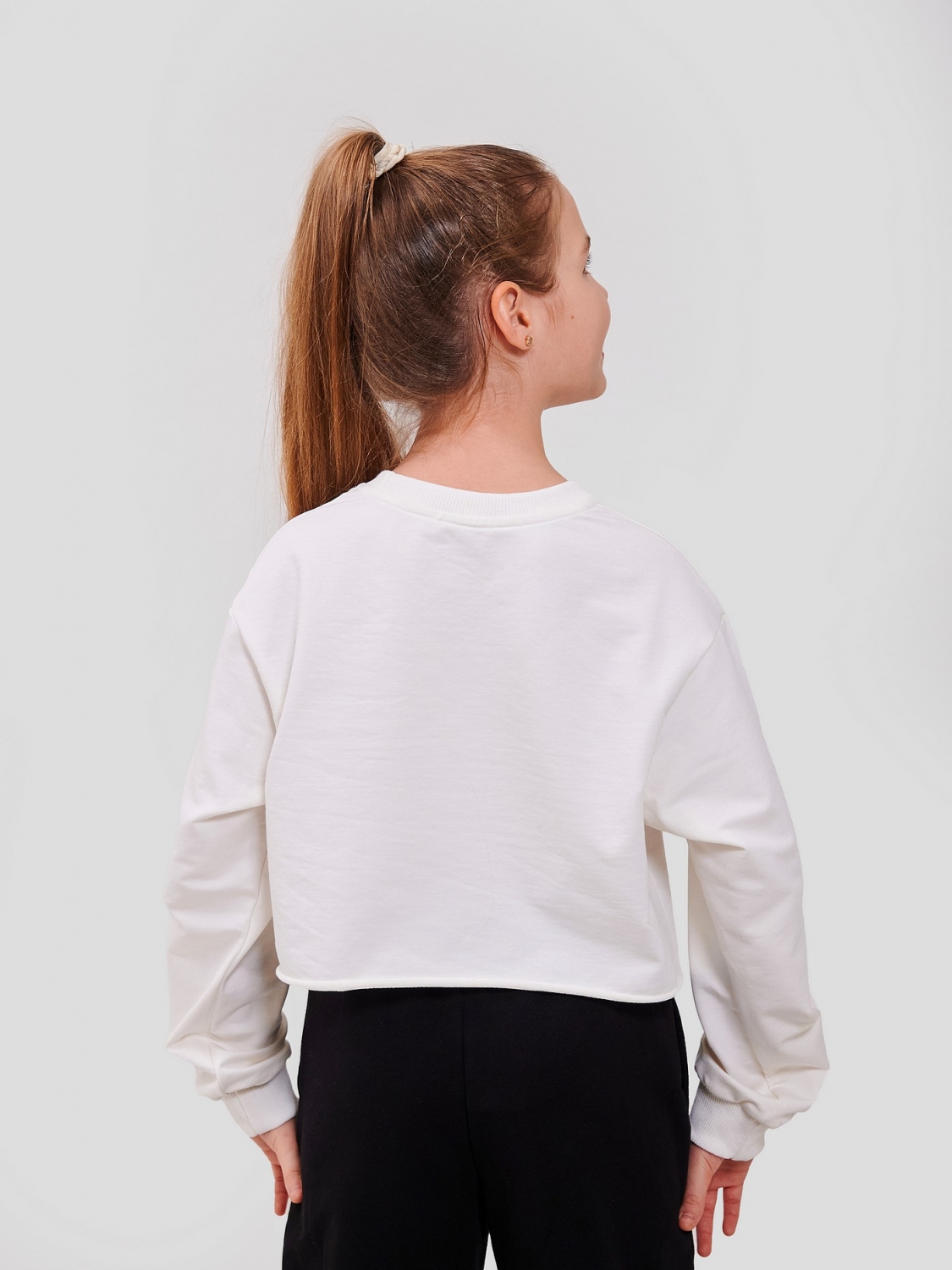 Детский свитшот для девочки | Размер: от 122 до 164 см | 95% cotton | Premium стрейч-футер для девочки SMIL 116678 Молочный