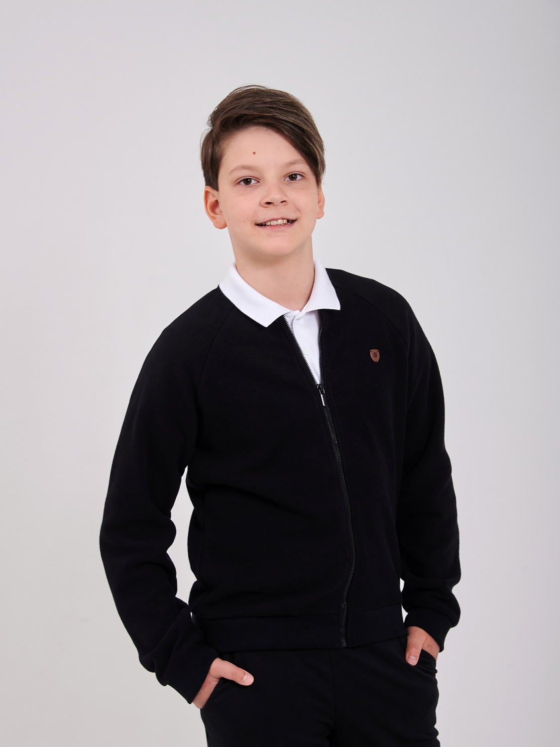 Детский бомбер для мальчика | Размер: 146 см - 176 см | Качественный трикотаж Селяник | Надежная и удобная молния | Комфортный и модный для мальчика SMIL 116684 Черный