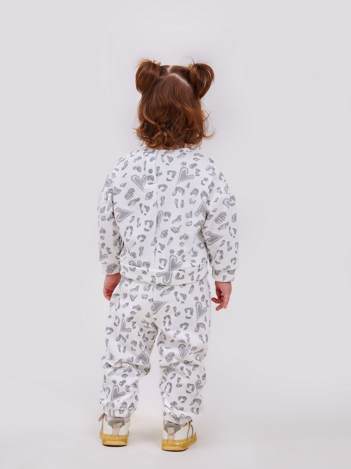 Идеальный комплект для повседневных приключений и прогулок!Мягкий свитшот – удобная посадка, не сковывает движения. Кнопки на спине помогают легко надевать и снимать, без дискомфорта для малышки. Нежная наклейка-сердце – милый акцент для стильного образа. Удобные брюки – комфортный крой для активных игр и прогулок.