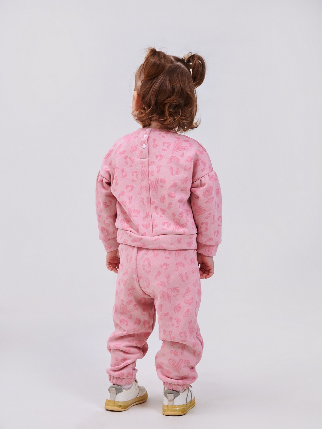 Идеальный комплект для повседневных приключений и прогулок!Мягкий свитшот – удобная посадка, не сковывает движения. Кнопки на спине помогают легко надевать и снимать, без дискомфорта для малышки. Нежная наклейка-сердце – милый акцент для стильного образа. Удобные брюки – комфортный крой для активных игр и прогулок.