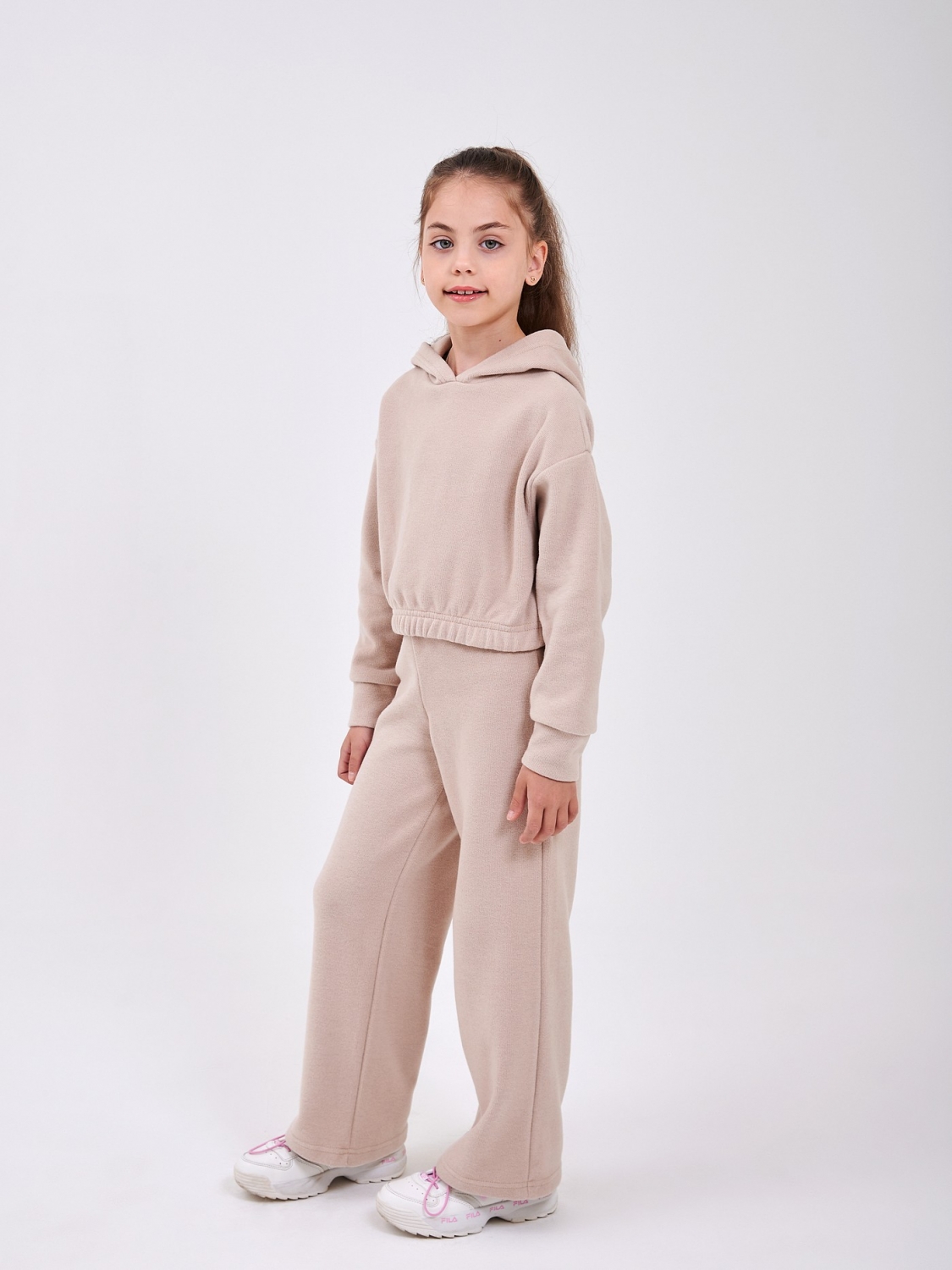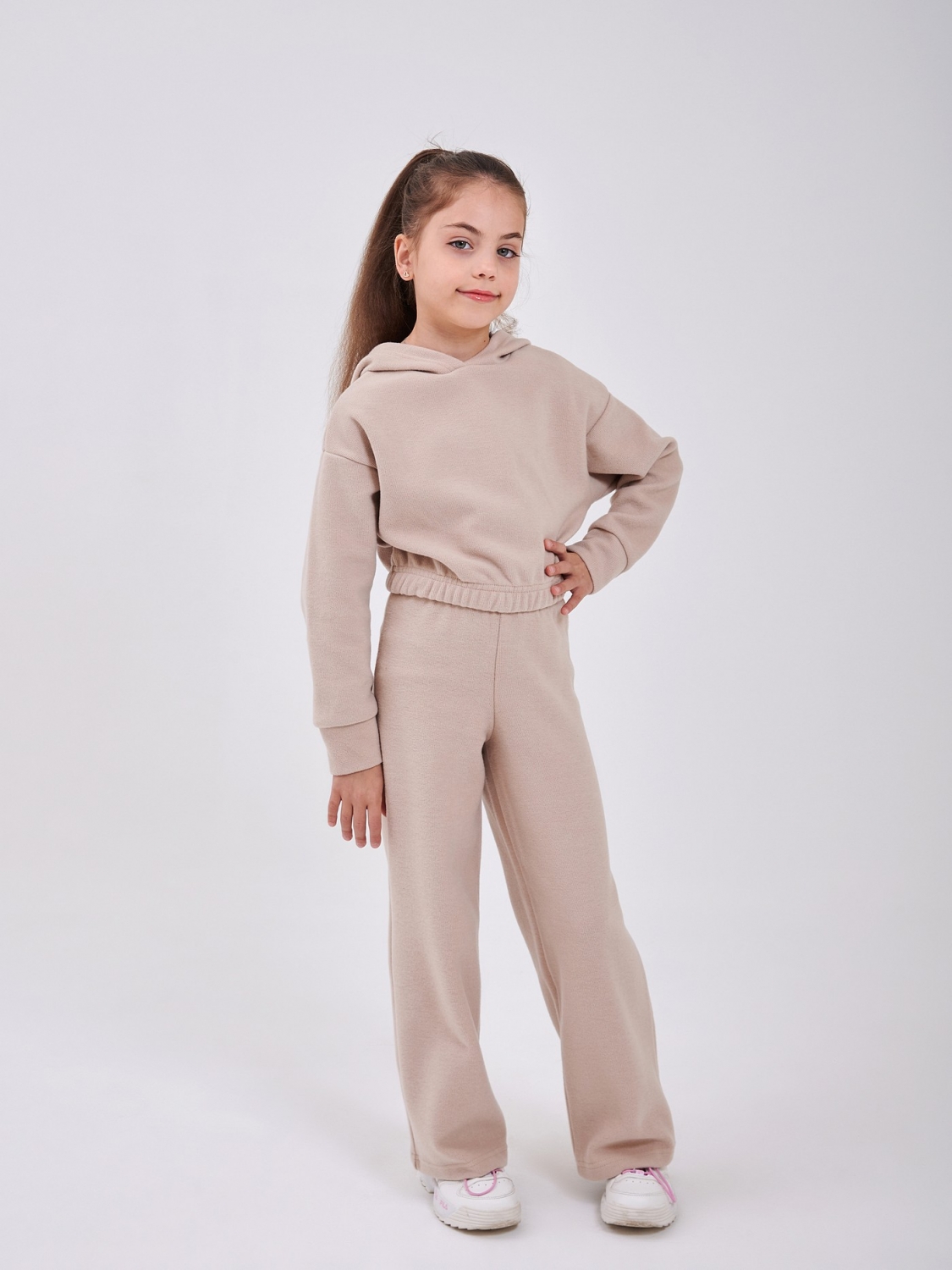 Мягкий бежевый костюм для девочки из приятного к телу полотна селянка — это идеальный баланс между удобством и модным образом. Кофта с капюшоном и свободные брюки с резинкой на поясе подойдут для прогулок, школы и отдыха. Натуральный состав, уютная текстура и современный крой — всё, что нужно для комфорта и хорошего настроения.