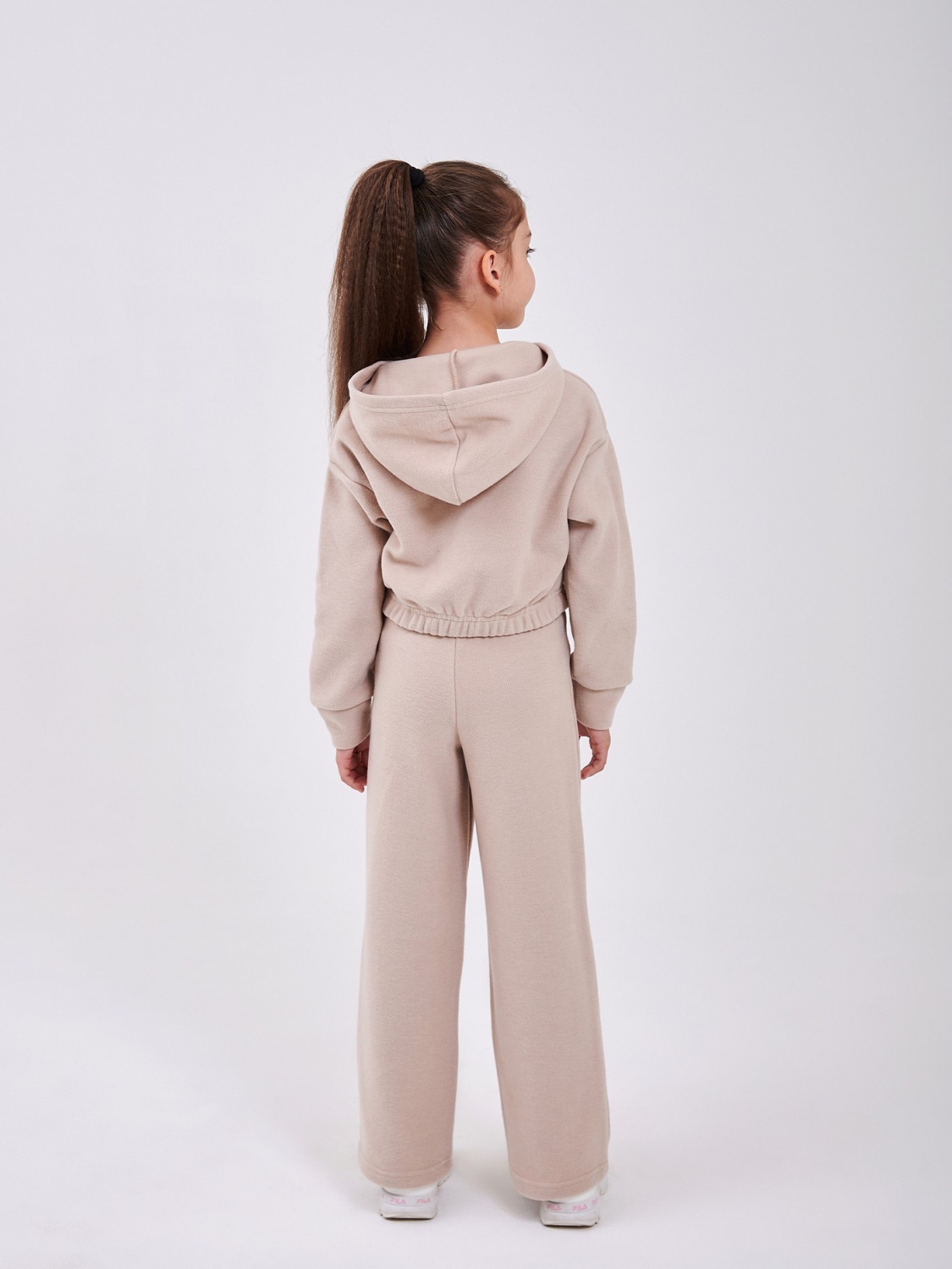 Детский костюм для девочки | Размер: от 122 см до 140 см | 70% cotton | Качественный трикотаж Селяник | Комфортный, прочный с капюшоном для девочки SMIL 117470 Бежевый