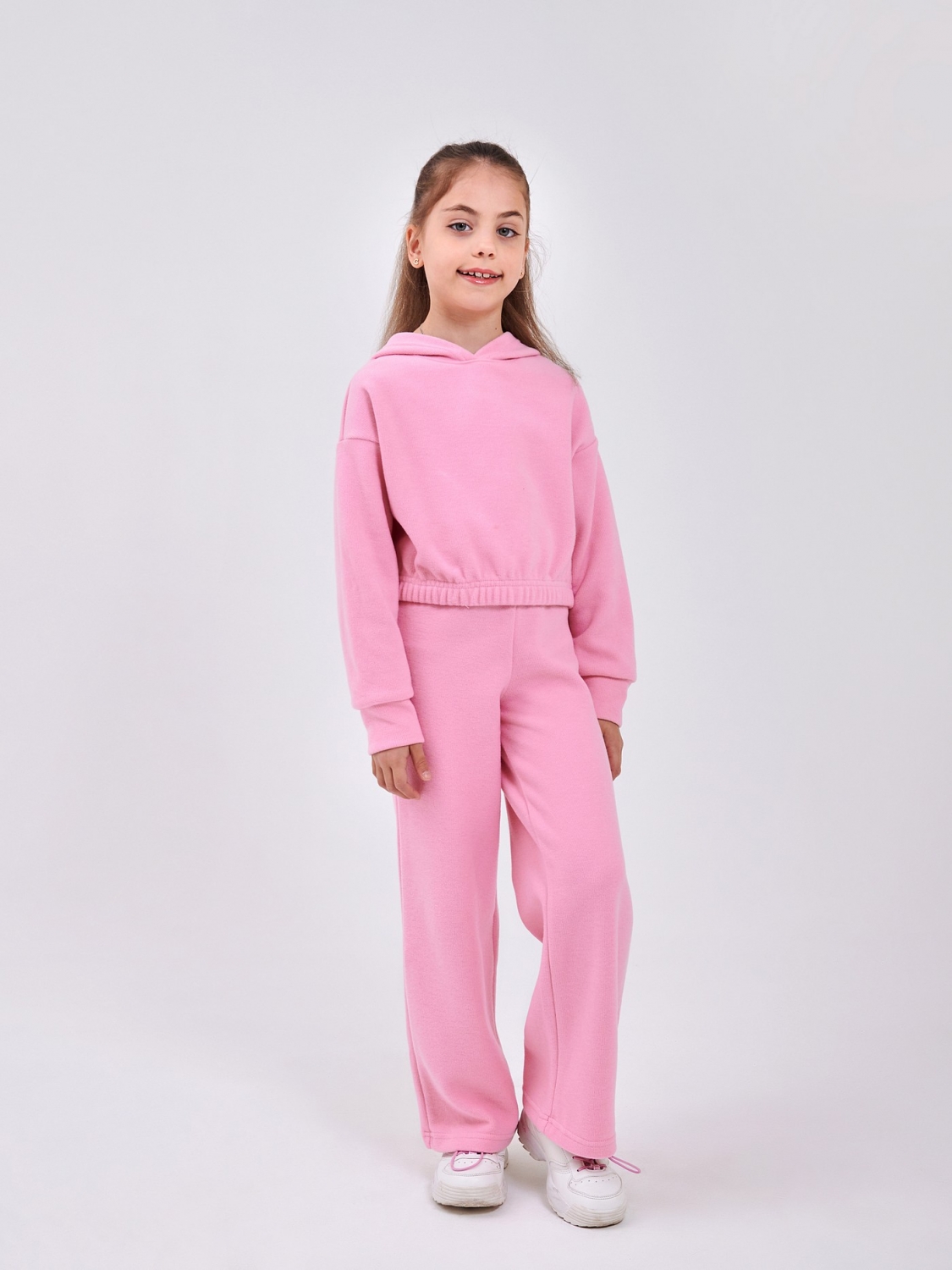 Стильный костюм для девочки из мягкого полотна селянка в нежно-розовом оттенке — это идеальное сочетание уюта и свежего образа. Укороченное худи с капюшоном и прямые брюки на удобной резинке дарят полную свободу движений. Приятное к телу полотно, современный крой и романтичный цвет — всё, что нужно для хорошего настроения каждый день!
