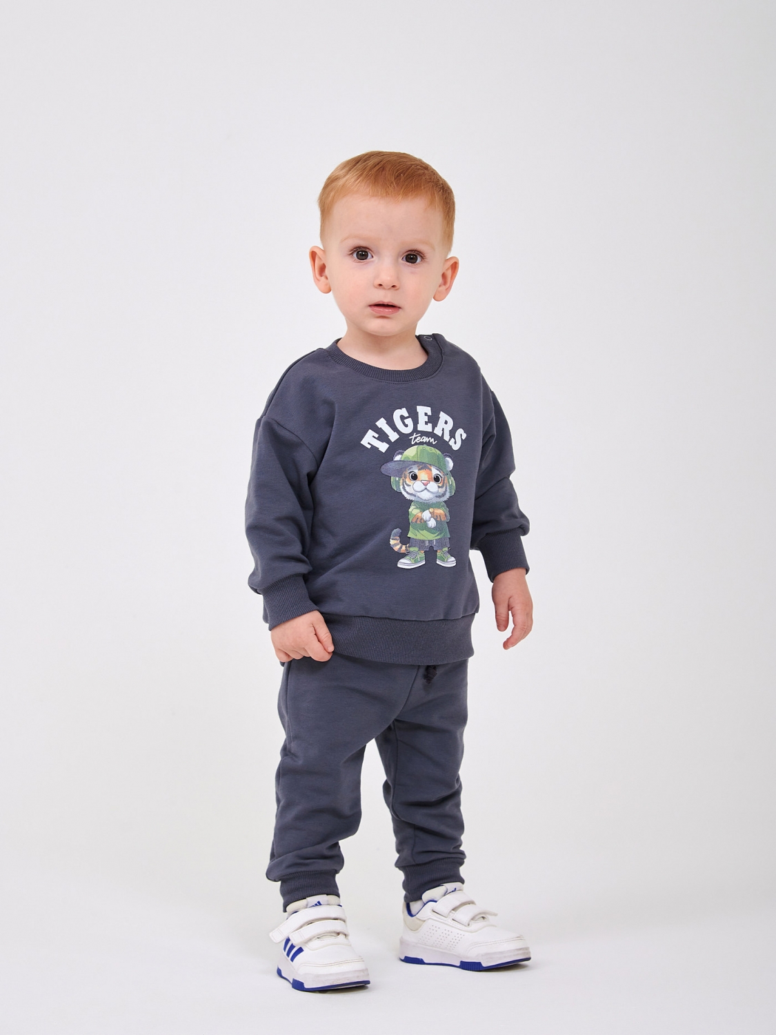 Комплект для мальчика (худи+штаны) для мальчика SMIL 117526-1-2s Темно-серый