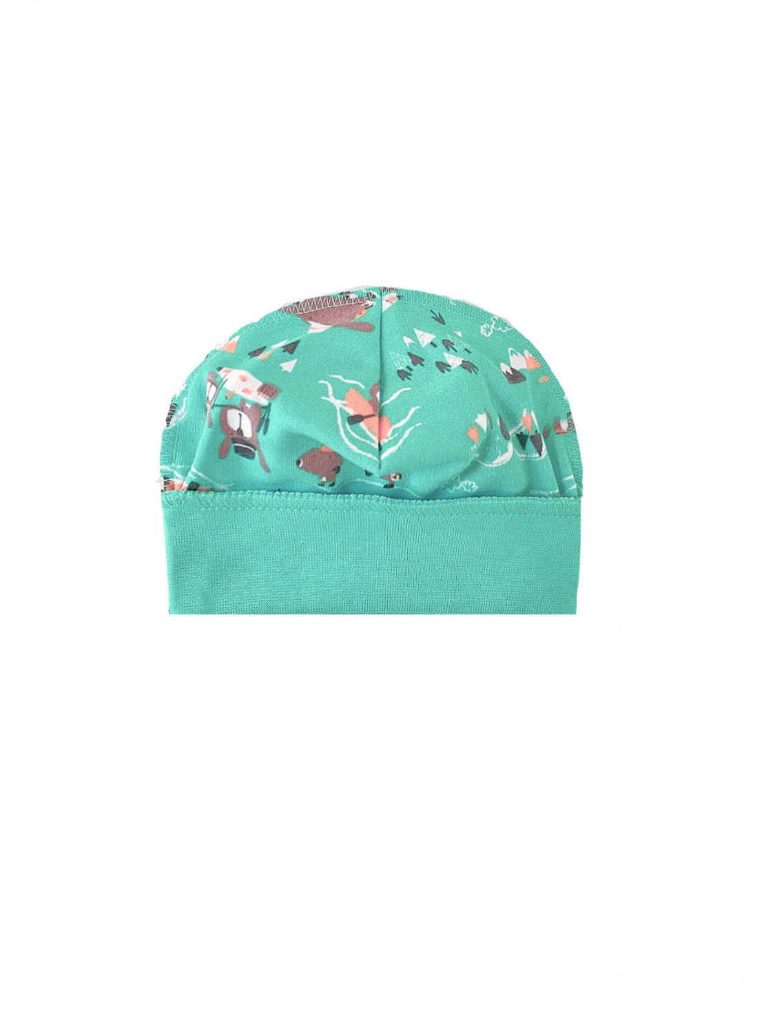 Универсальная и практичная шапочка для мальчиков сшита из качественного, мягкого и гипоаллергенного интерлока. Надежную фиксацию на голове обеспечивает эластичный ободок, который не причиняет дискомфорт даже при длительной носке. Милая шапочка из бирюзовой принтованной ткани будет хорошо смотреться с куртками, кофтами, свитерами, комбинезонами