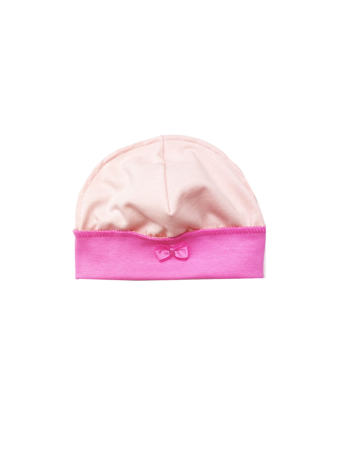 Милая шапочка в персиковом цвете не даст малышке замерзнуть и сохранит ушки в тепле. Для пошива использовался износостойкий хлопковый материал, который не препятствует воздухообмену. Шапочка декорирована небольшим бантиком и оснащена широкой розовой резинкой, благодаря которой аксессуар плотно прилегает к голове. Носить ее можно каждый день в течении всего года.