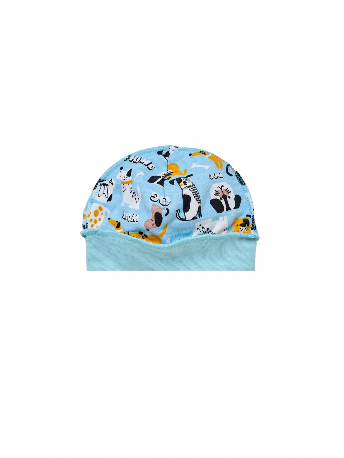 Шапочка с рисунком собачек на голубом фоне придаст вашему мальчику веселый и яркий вид. Наружные швы и эластичная резинка обеспечивают комфорт и удобство, позволяя вашему малышу чувствовать себя свободно. Теплое хлопковое полотно футер с начесом согреет в холодное время года. Даже самые маленькие аксессуары могут сделать образ особенным.