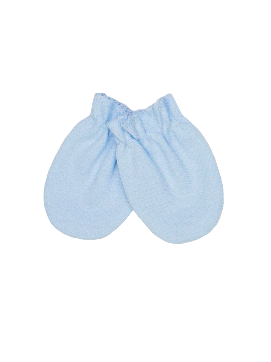 Мягкие голубые царапки – обязательный атрибут гардероба новорожденного. Их главное назначение – защитить малыша от травм, не дать ему себя поцарапать и сохранить ручки в тепле. Для пошива использовался мягкий хлопковый материал – интерлок софт, который приятно ощущается на теле. На ручках фиксируется при помощи мягкой резинки, которая не давит и не натирает.