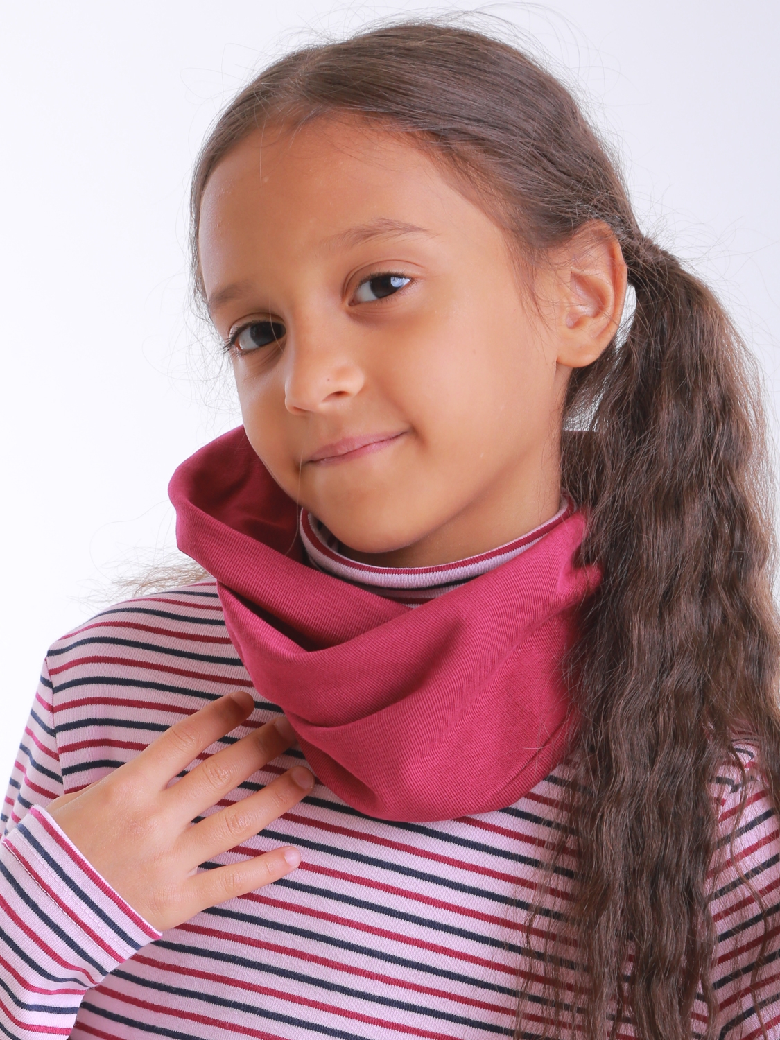 Хомут бордового цвета – стильный аксессуар, который девочка сможет носить в холодный сезон. Изделие не только защитит ребенка от ветра, но станет главной изюминкой образа. Для пошива использовался прочный хлопковый материал – стрейчевый ластик, который не препятствует воздухообмену и приятно ощущается на теле. Хомут можно сочетать с куртками, пуховиками и другими аксессуарами, например, шапками или рукавичками.