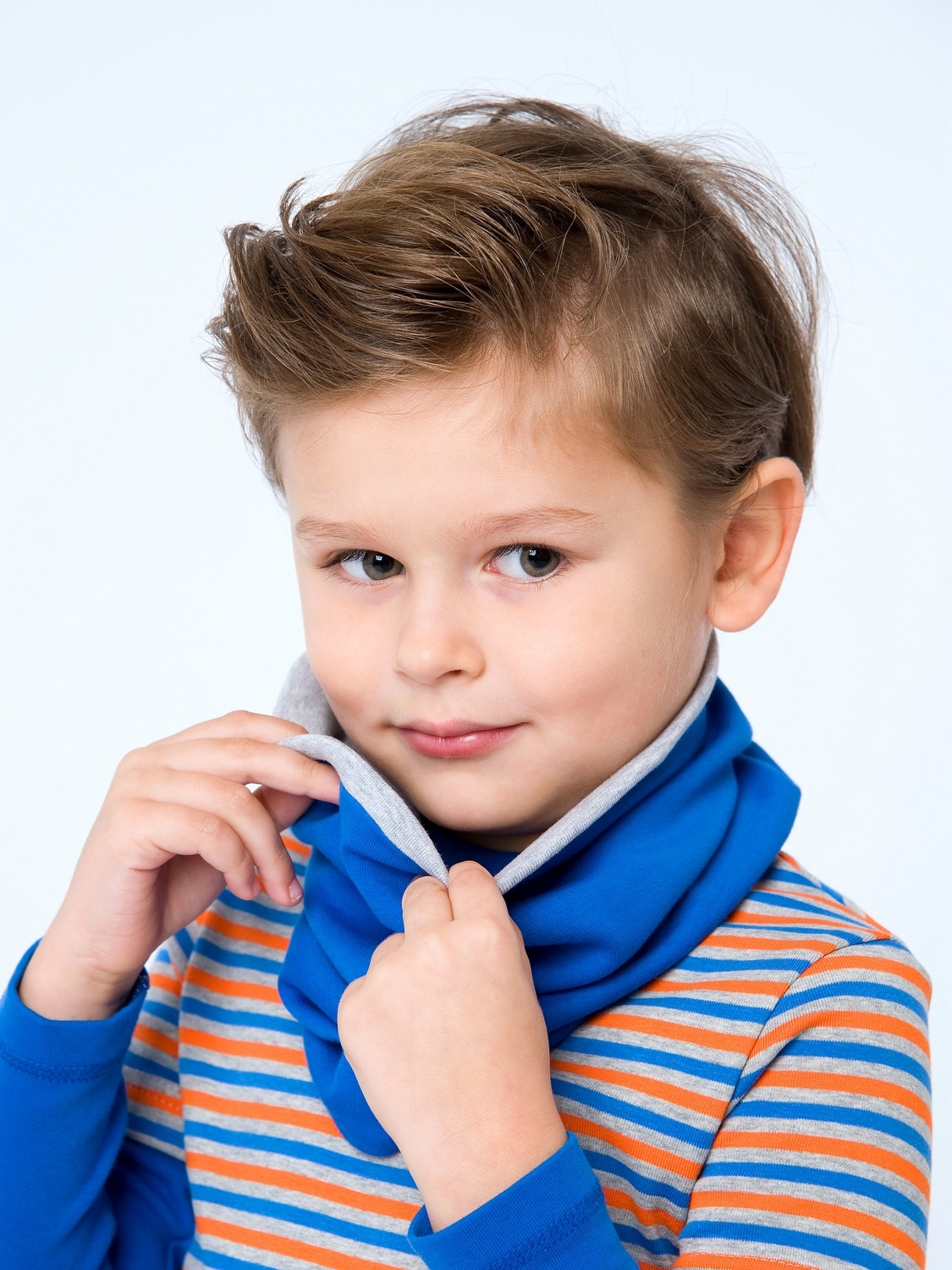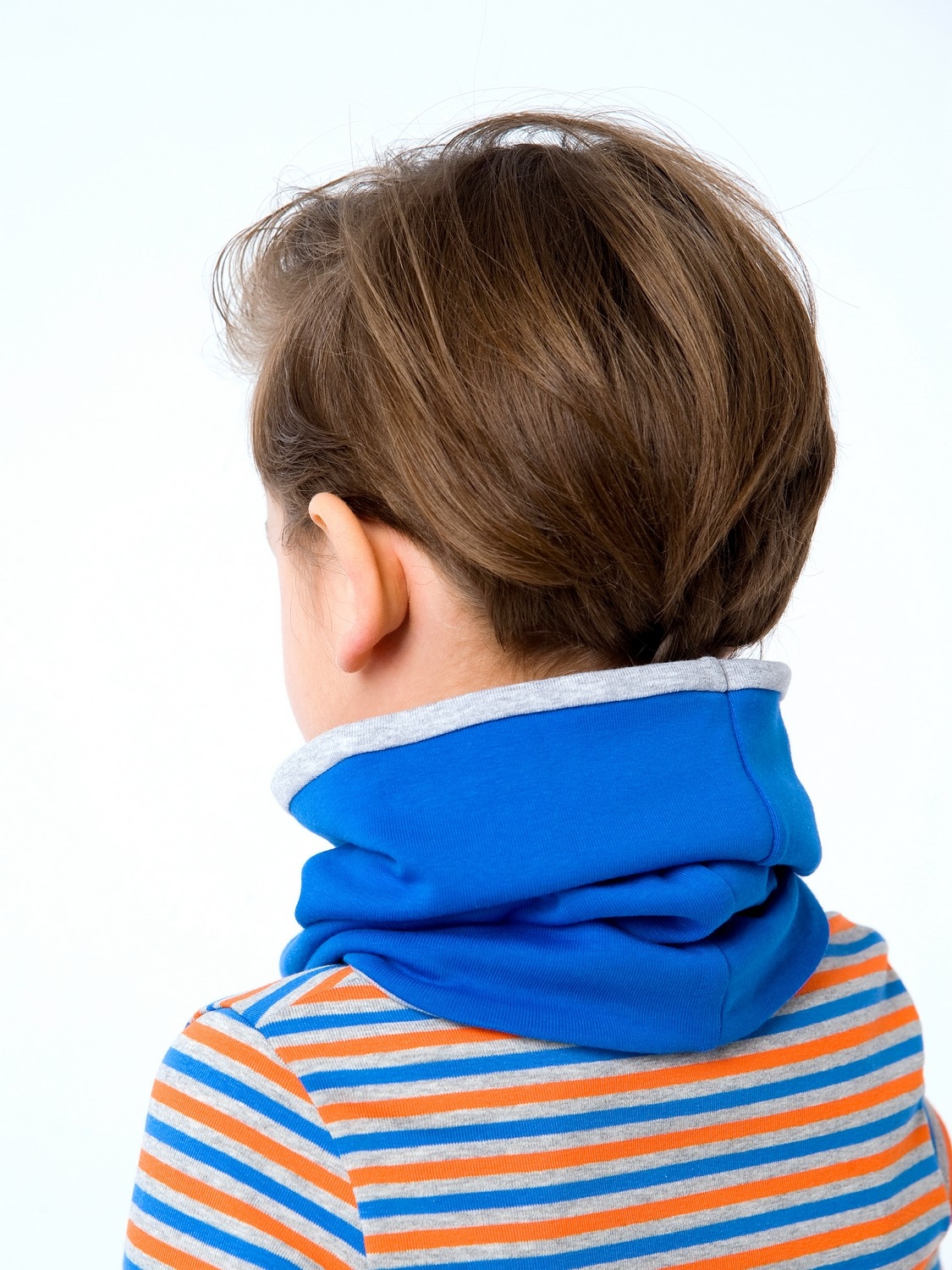 Хомут ярко-синего цвета. Отсутствие застежек позволит малышу надеть его даже самостоятельно. В ассортименте можно выбрать шапочку в тон данному изделию