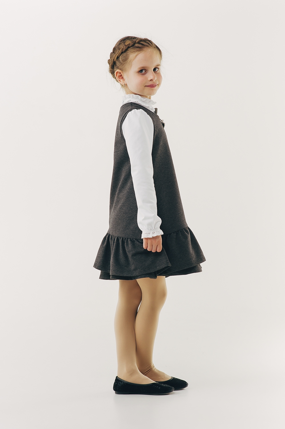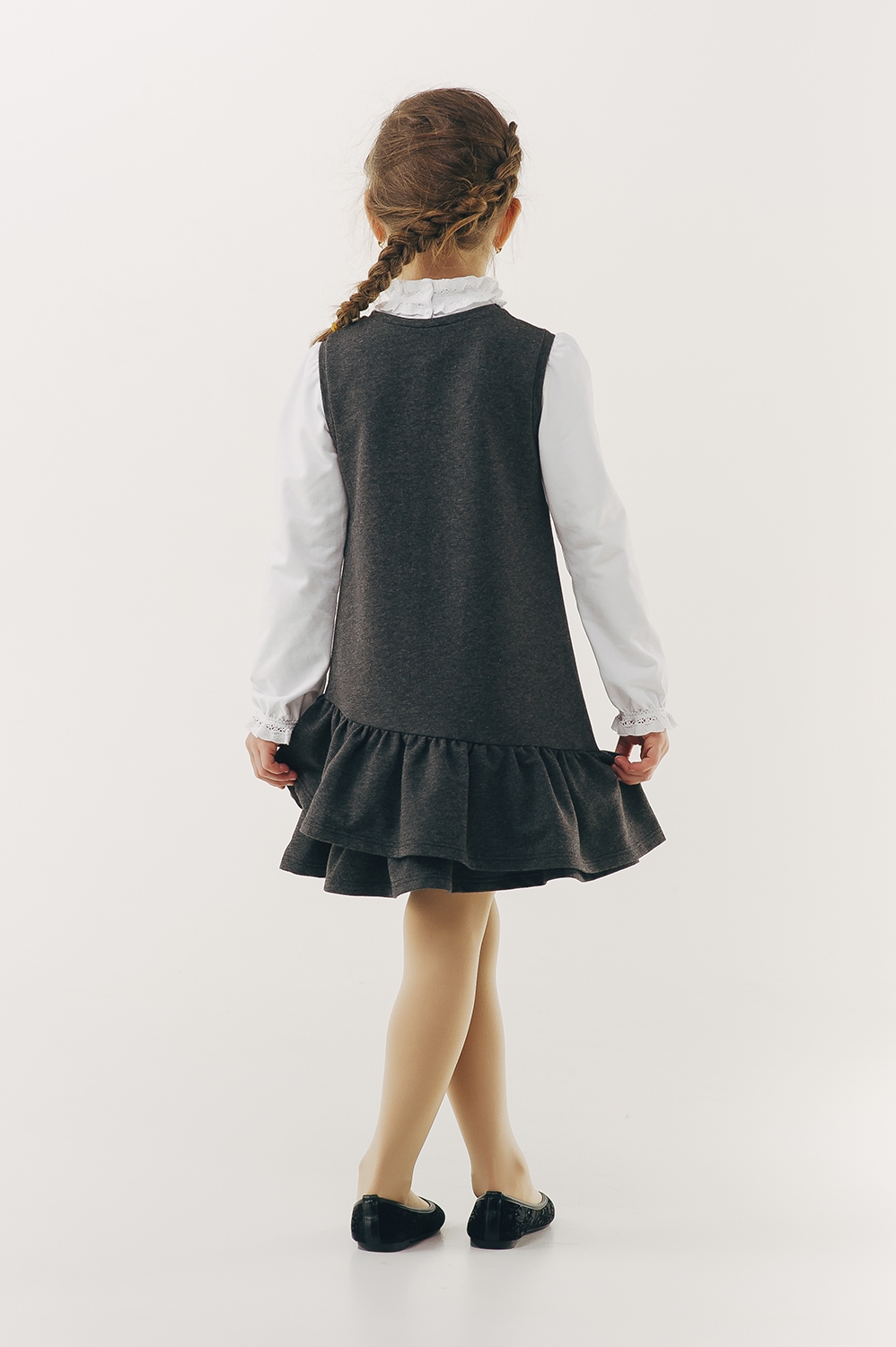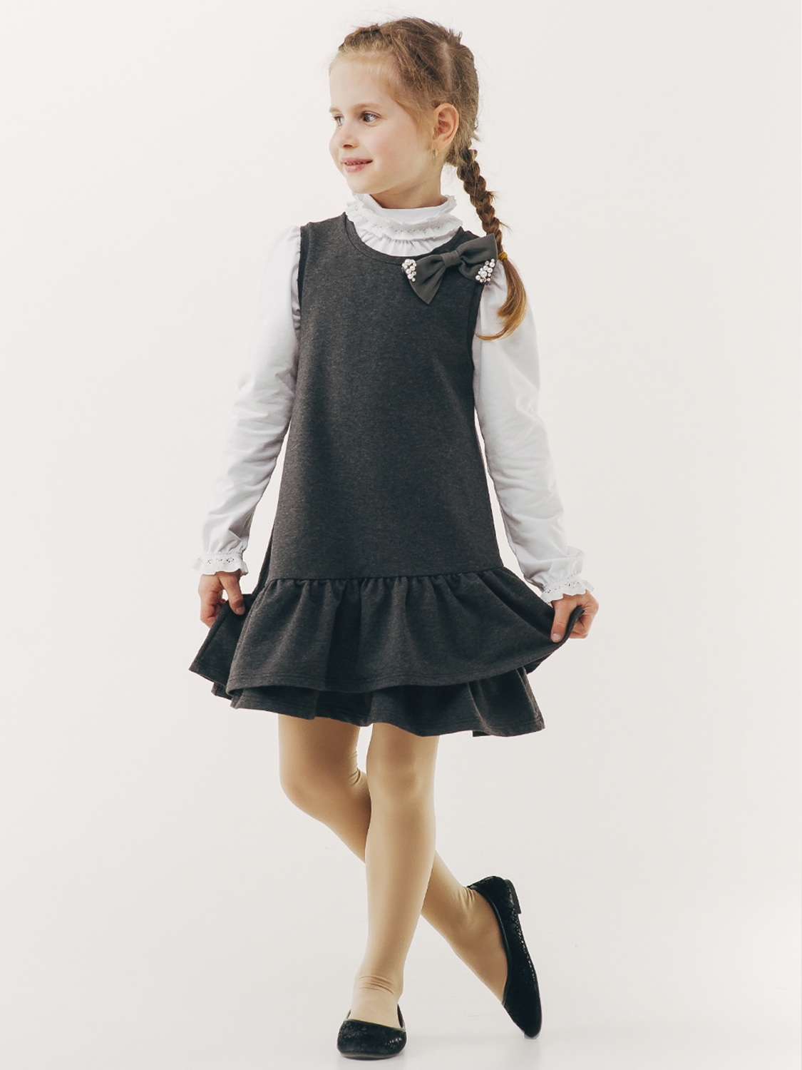Детский сарафан для девочки | Размер: 140 см | Стрейч-футер высшего качества | Идеален в школу | Стильно с блузками и лонгсливами для девочки SMIL 120225 Темно-серый меланж