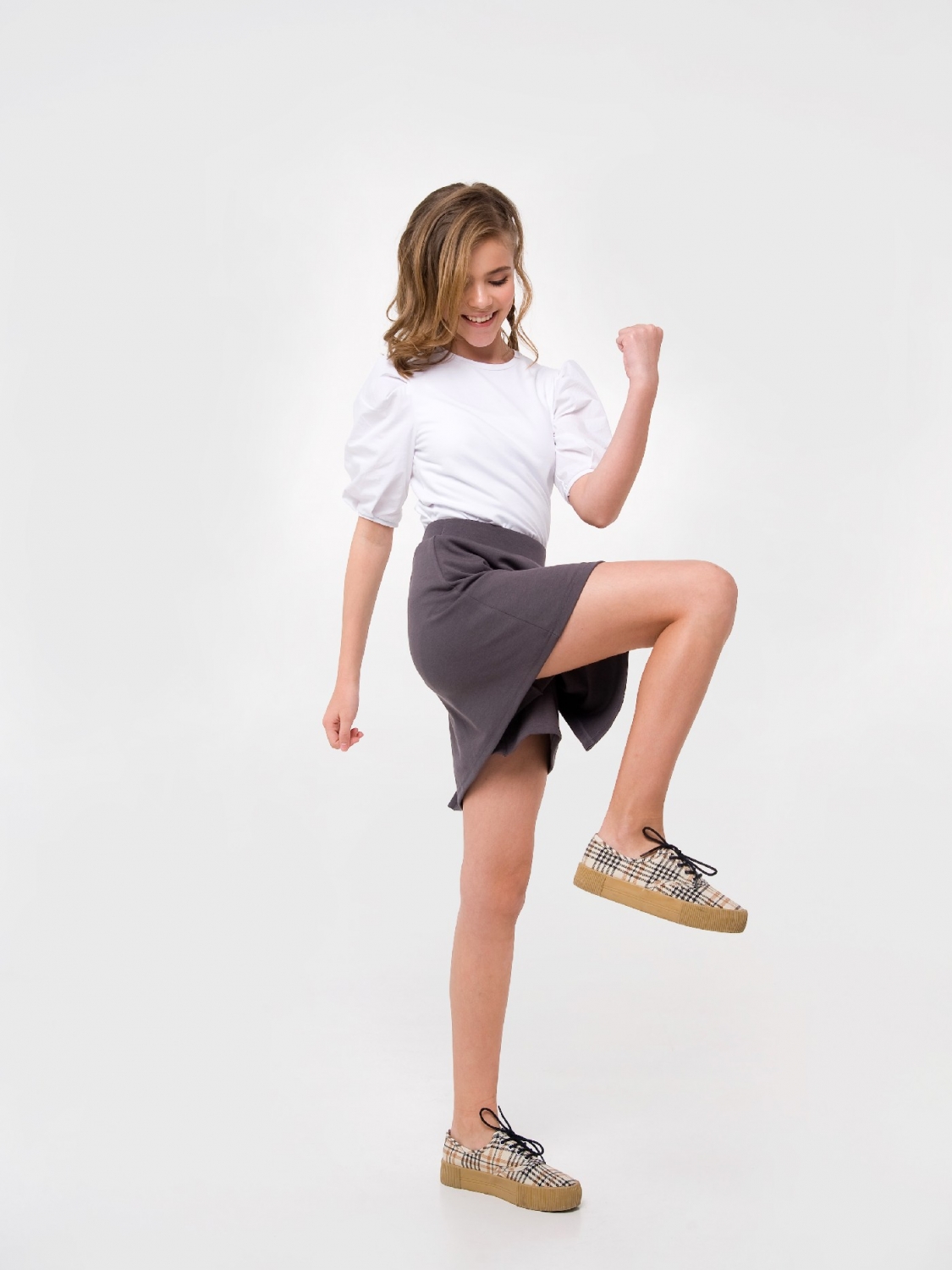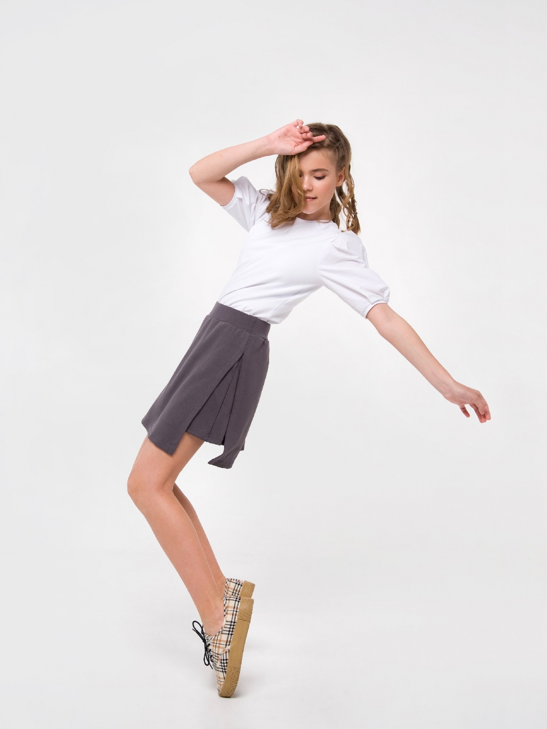 Универсальная серая юбка-шорты – тот элемент школьного гардероба, который будет актуален всегда. Изделие подойдет девочкам в возрасте 7-16 лет. Для пошива использовался мягкий, приятный к телу материал – пунто ди рома, а это исключает появление раздражения и аллергии. Юбка хорошо сочетается с блузками и футболками, бомберами и пиджаками. изделие рассчитано на ежедневную носку.