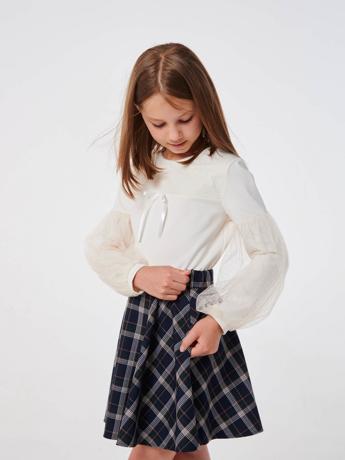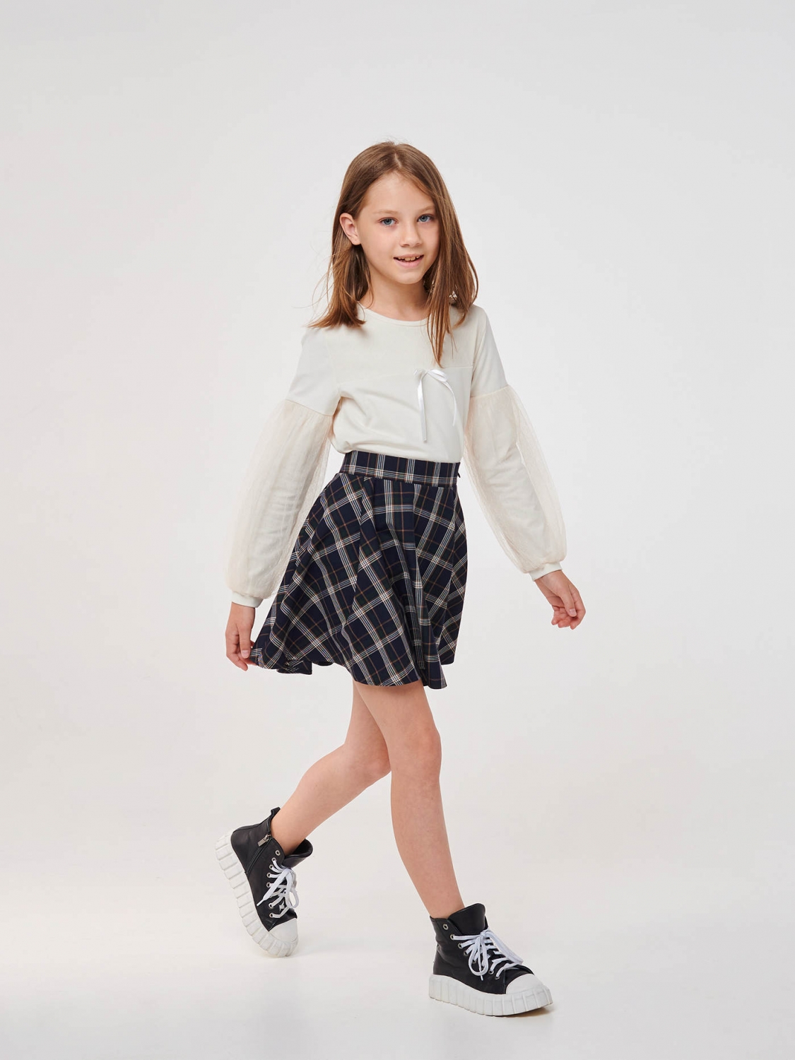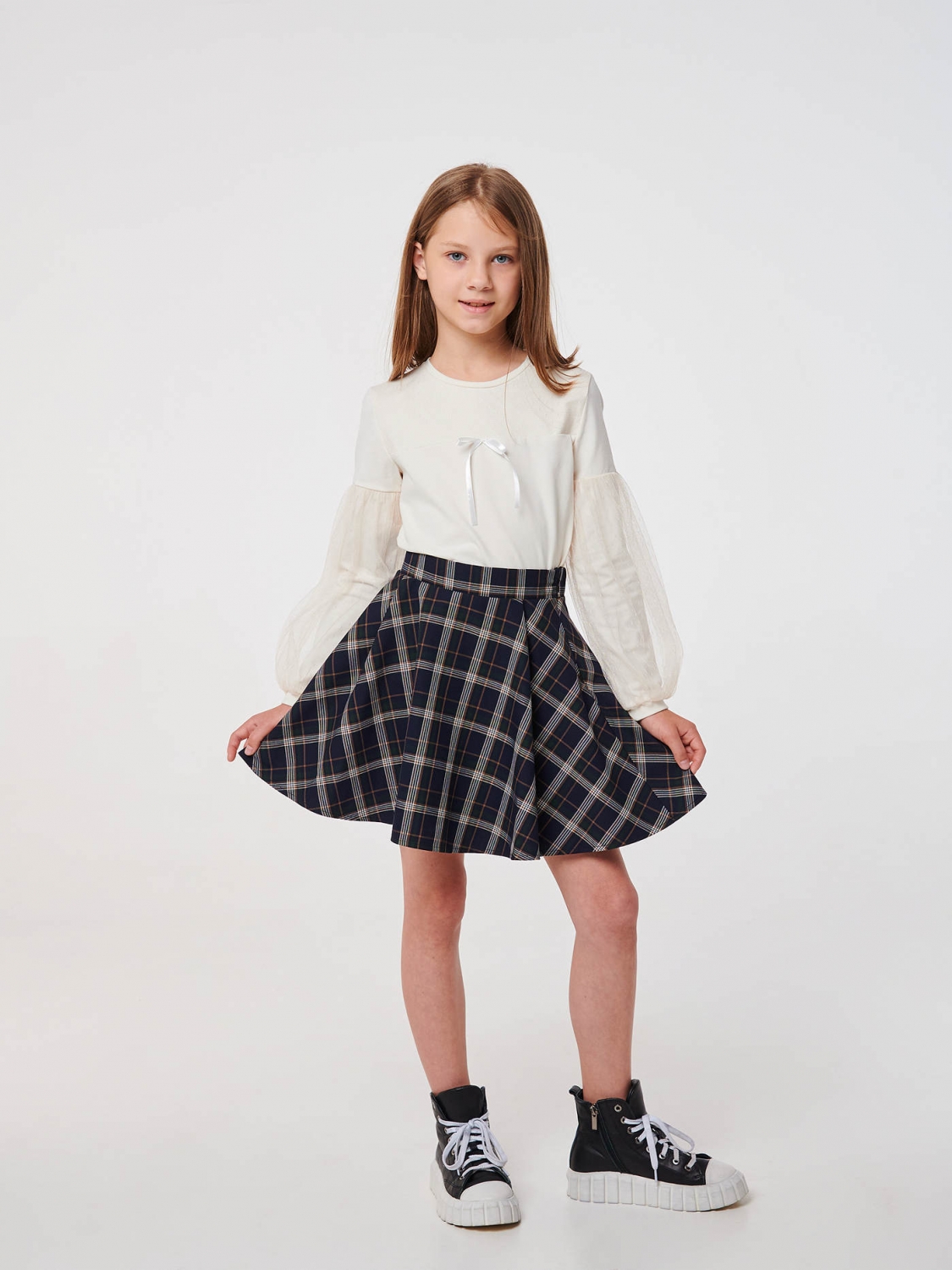 Юбка-клеш является символом изящества и грации. Она обрамляет фигуру вашей девочки и создает легкое волнующее движение при каждом шаге. Клетчатый узор вносит элемент классики в образ, позволяя создавать стильные комплекты для различных сезонов и поводов. Сочетайте юбку с блузами, свитшотами или футболками, чтобы создавать разнообразные модные образы. Для большего удобства в изделии предусмотрена потайная застежка-молния.
