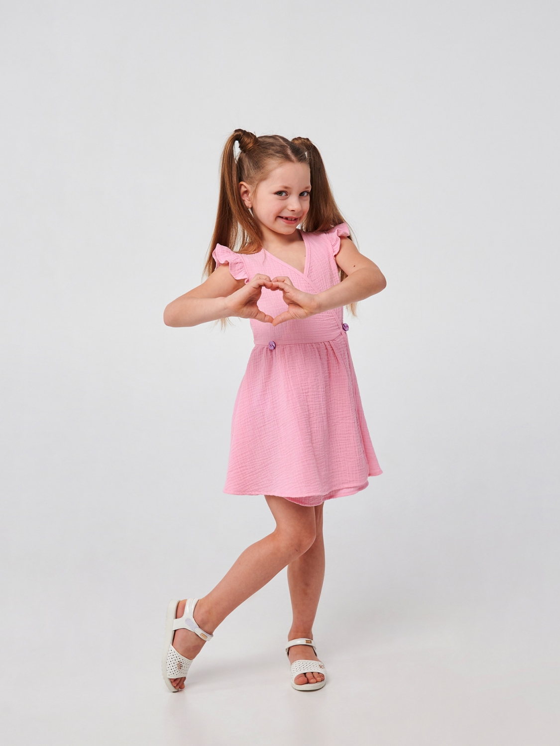 Милое, очаровательное и легкое платье на запах для маленьких модниц. Мягкий и нежный муслин придаст образу воздушности и стиля. Яркий летний цвет добавит свежести и привлечёт внимание окружающих. Благодаря завязкам на спинке платье идеально ложится по фигуре и придает изысканности и утонченности. Удобные пуговички, не только украшают платье, но и обеспечивают легкость в одевании и снятии, делая это платье идеальным выбором для каждого дня.