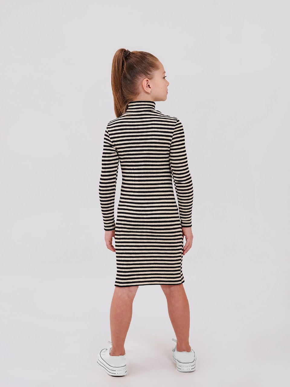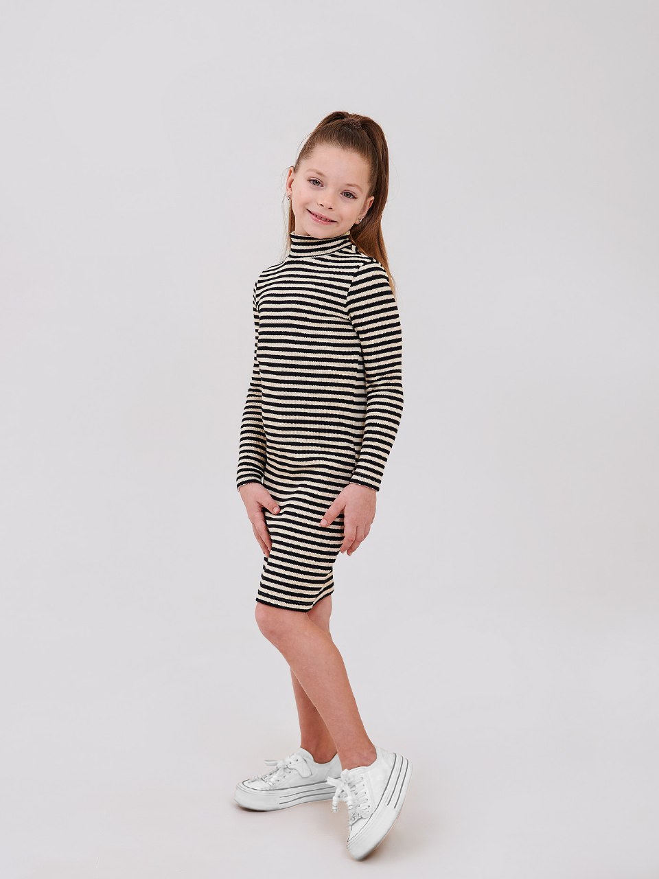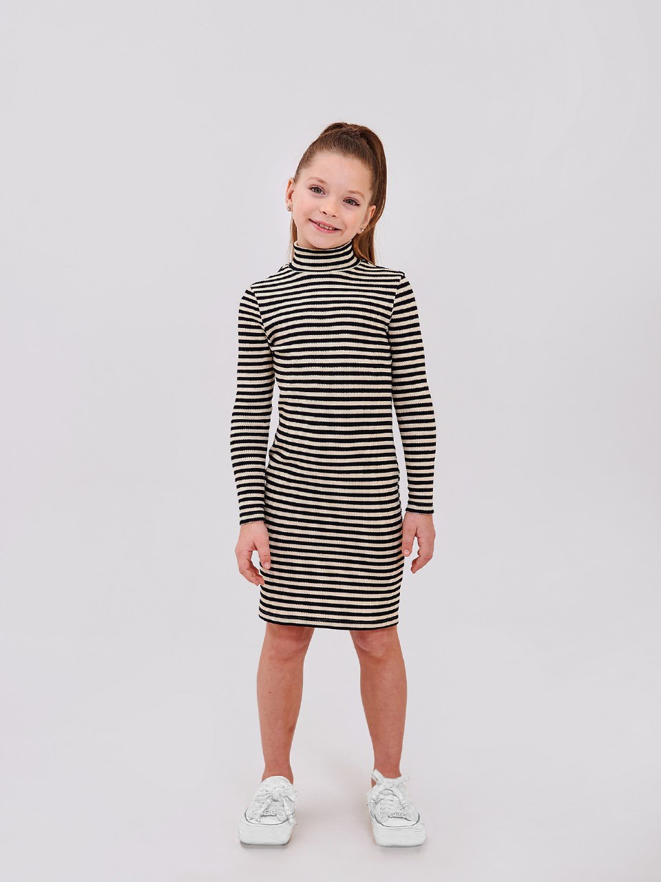 Платье в полоску для девочек - идеальный выбор для юных модниц! Приталенный силуэт подчеркивает изящность и создаёт утончённый образ. Полотно "вязаная полоска" – мягкое, эластичное, идеально садится по фигуре. Воротник-стойка добавляет элегантности и согревает в прохладную погоду. Удобный фасон для повседневной носки и особых случаев.