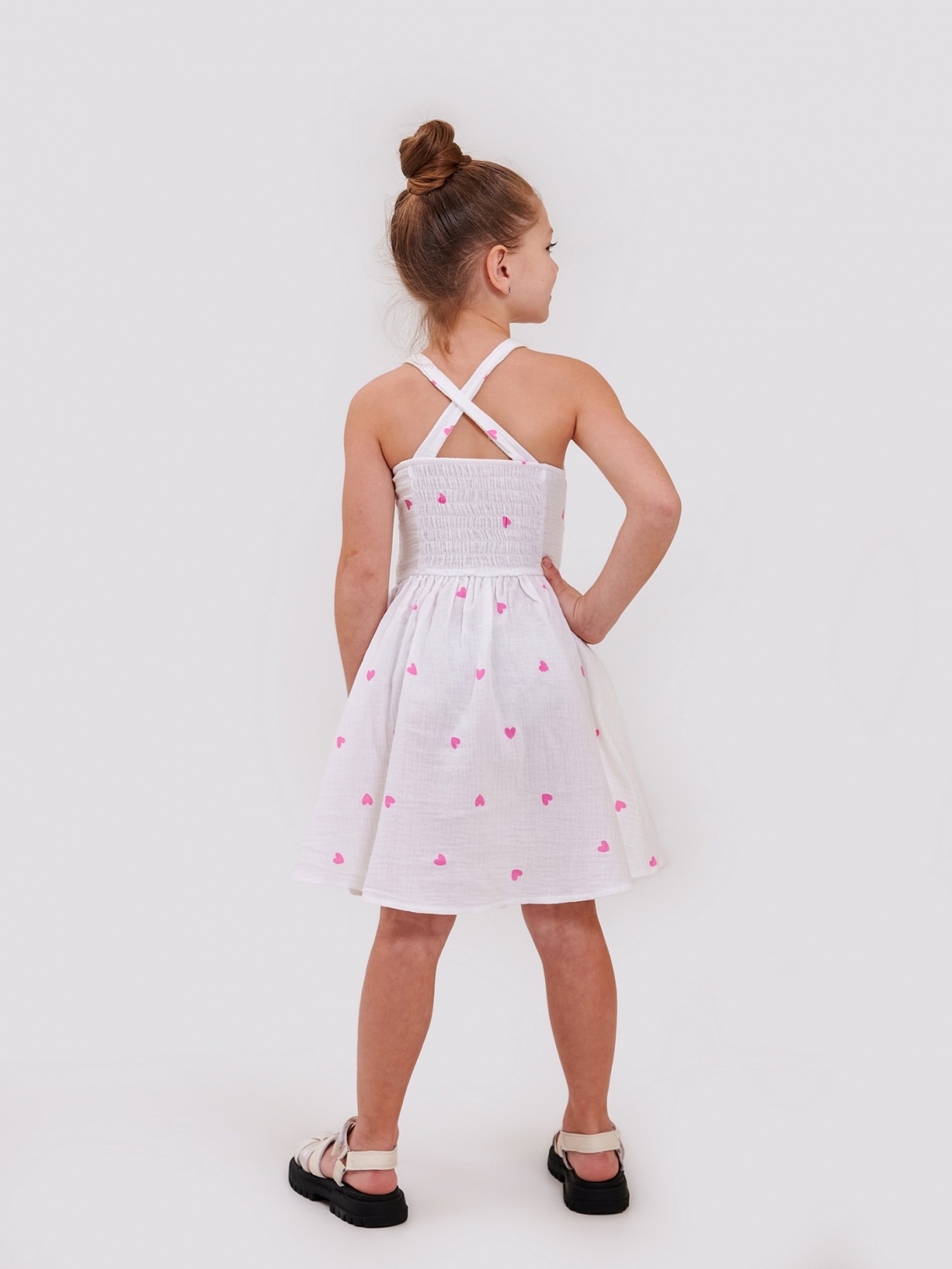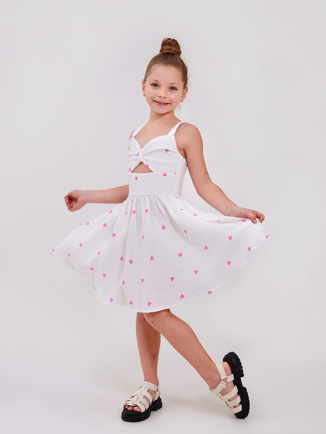 Детский сарафан | от 122 до 140 | 100% хлопок | Нежный муслин высшего качества | Идеально на лето | Позволяет коже дышать для девочки SMIL 120431 Рисунок сердечки на белом