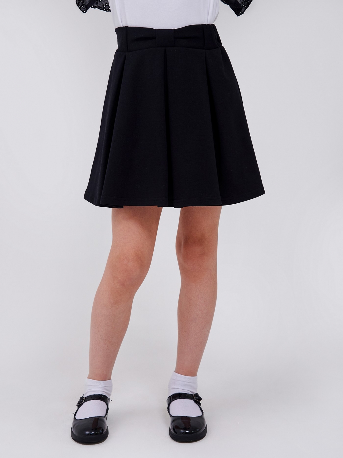 Юбка для девочки с мягкими складками и с иметацией милого бантика на поясе — идеальный выбор для школы, праздников и повседневной носки. Полотно стрейчевый футер обеспечивает комфорт, свободу движений и аккуратную посадку. Легко сочетается с блузками, футболками и жакетами.