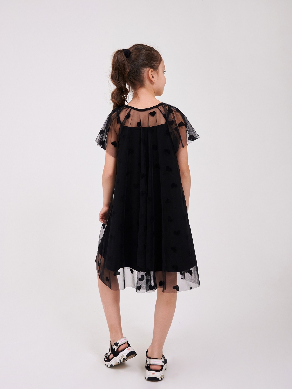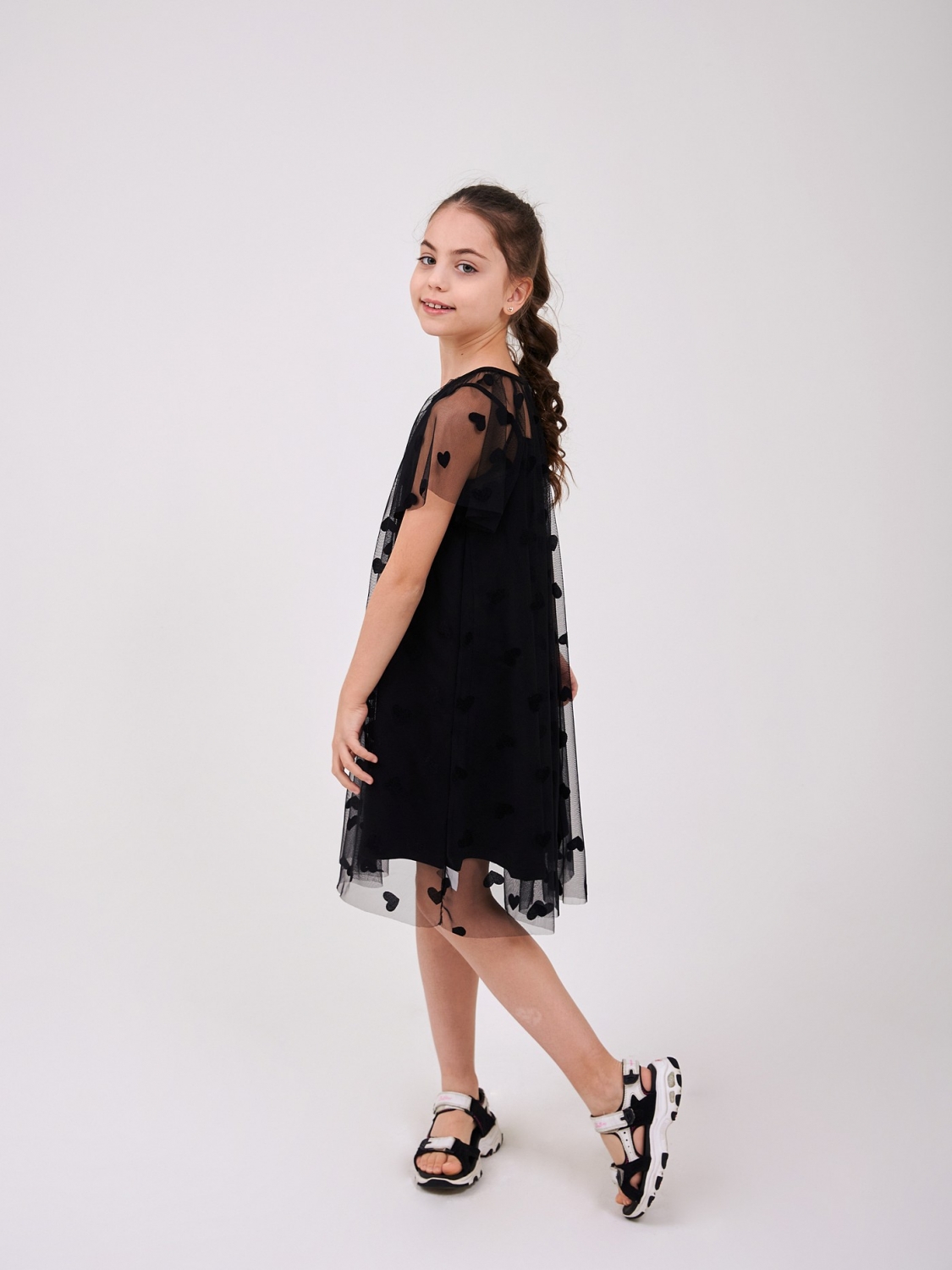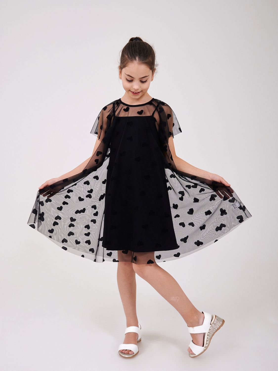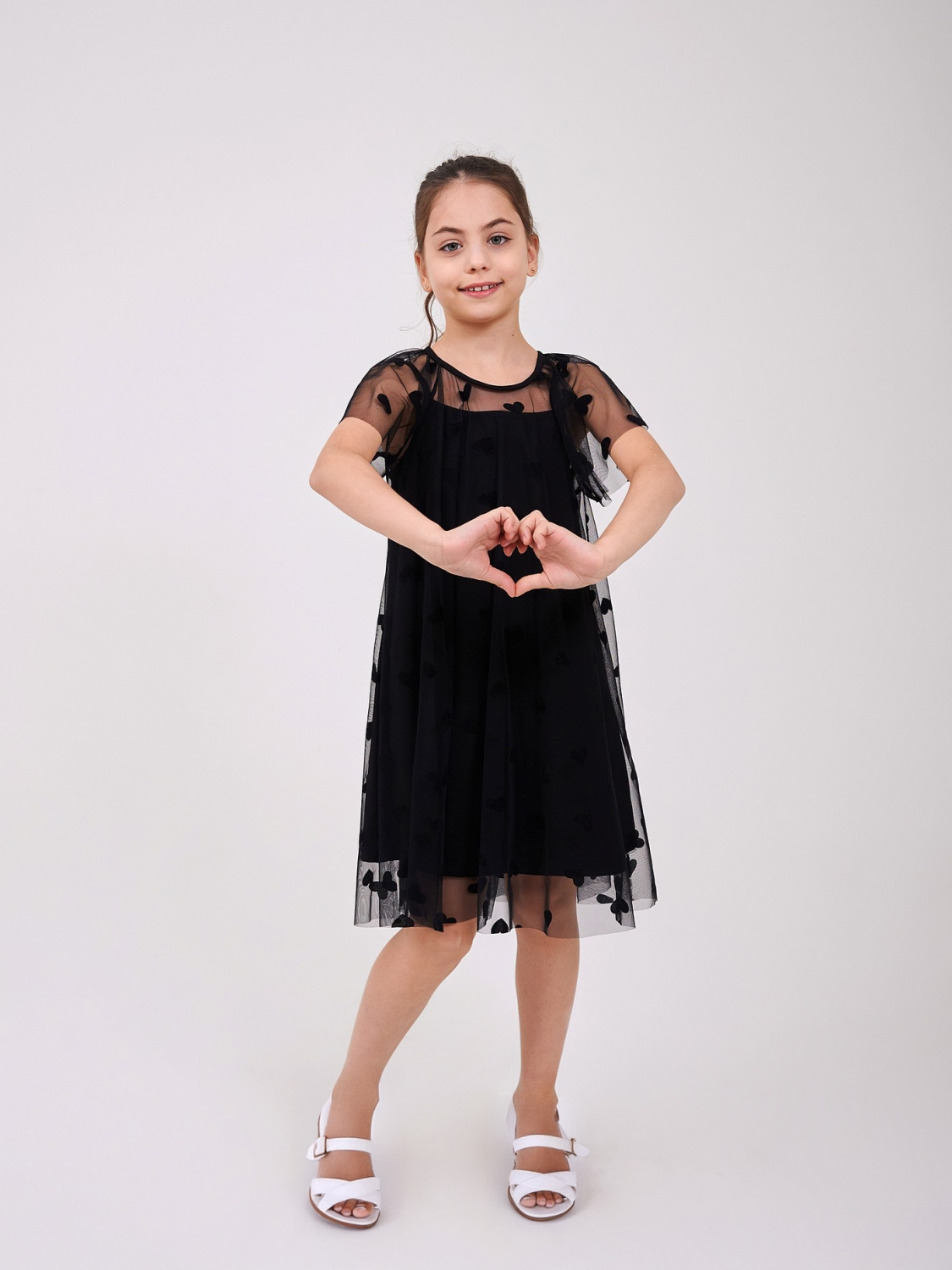Детское платье для девочки от 11 до 16 лет 95% cotton Eco Рубчик Rib Knit Стильное с Вырезами для девочки 120475-1 Черный