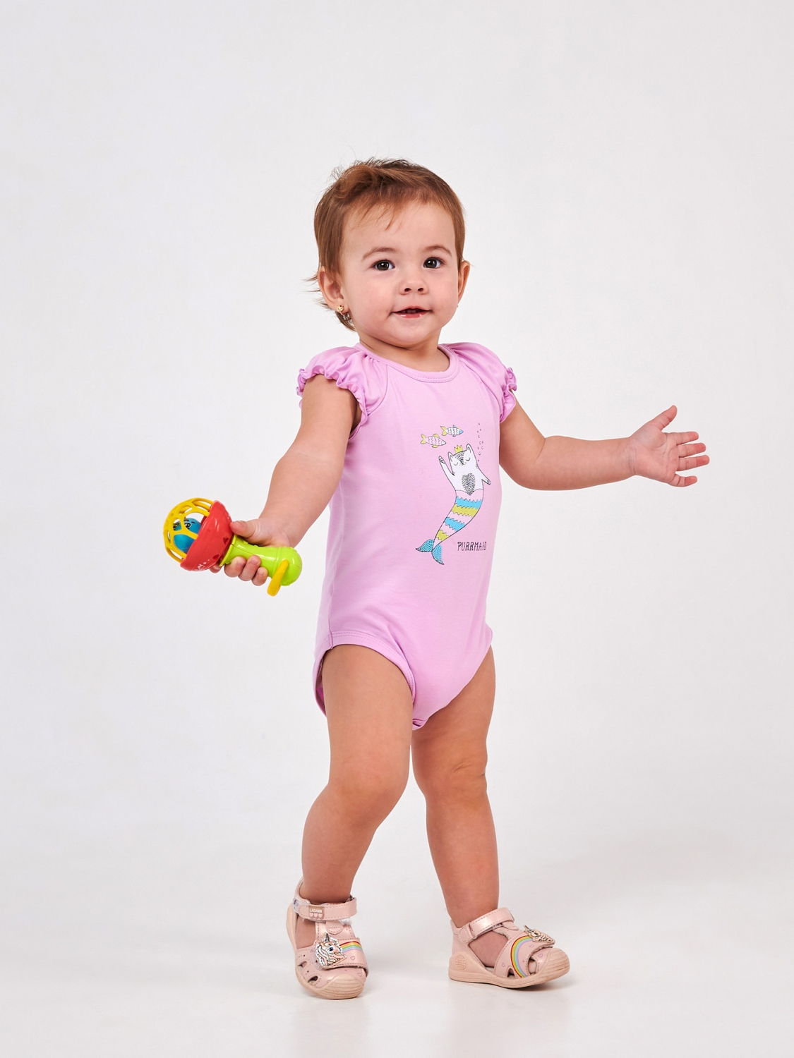 Для девочек, чьи мечты полны волшебства – наш лиловый бодик с прямой печатью котика-русалочки! В этом невероятно уютном и стильном боди ваша малышка будет прекрасно выглядеть и чувствовать себя уверенно. Рукавчики этого бодика украшены мягкими рюшами, добавляя образу изящества и нежности. А наличие кнопочек как на спинке, так и внизу обеспечивает легкость одевания и снятия – для вашего удобства и комфорта. Полотно из стрейчевого кулира обеспечит вашей малышке свободу движения и комфорт в любой ситуации.