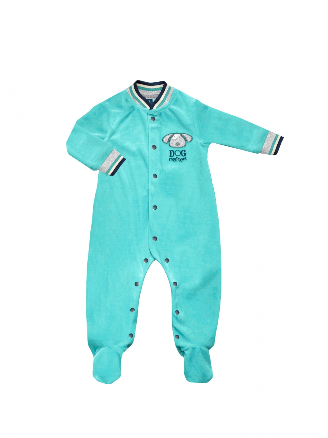 Практичный комбинезон бирюзового цвета подойдет с воротником-стойкой для ежедневной ношения в холодное время года. Это изделие сшито из прочного, приятного к телу и гипоаллергенного велюра. Комбинезон с закрытыми ножками и длинными рукавами оснащен резинками-манжетами, украшен нашивкой. Изделие застегивается на кнопки, расположенные спереди и на штанинах. Данная модель подойдет мальчикам в возрасте до трех месяцев