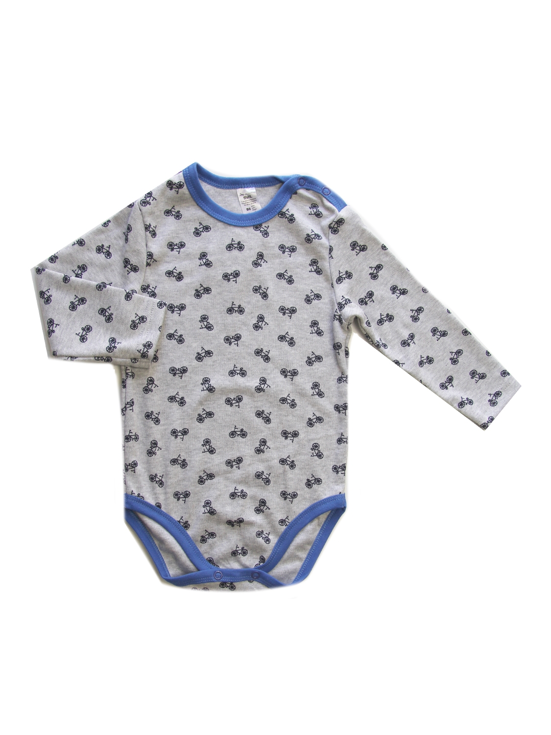 Боді з довгим рукавом пошитий з м'якого бавовняного інтерлок, що забезпечує комфорт і довговічність. Ніжні малюнки велосипедів на сірому фоні додають грайливості та стилю цього боді. Ми передбачили все для зручності використання: на боді встановлені кнопки на плічках і внизу, що дозволяє легко одягати і знімати його, а також забезпечує легкий доступ при зміні підгузника. . Боді з довгим рукавом ідеально підходить для повсякденного використання. Це відмінний вибір для ігор, прогулянок та домашніх справ вашого малюка.