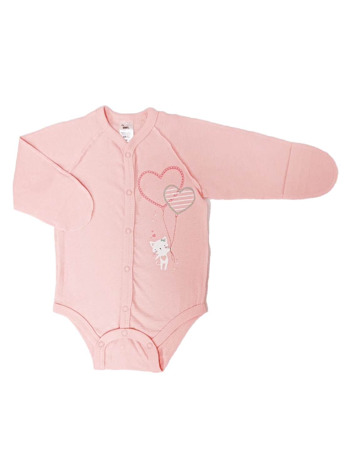 Подаруйте вашій дівчинці найкраще поєднання комфорту та стилю! Боді-розпашонка в ніжному кольорі рожевий персик з ажурного куліра забезпечить м'яке і приємне відчуття на шкірі вашого малюка. Зовнішні шви та закриті ручки ефективно захищають від подряпин та дарують впевненість у комфорті та безпеці. Зручні кнопки роблять переодягання легким і швидким, а прямий друк милої кішечки з сердечками надає боді неповторного шарму і грайливості. Нехай кожен день дитинства вашої дівчинки буде наповнений ніжністю та радістю.