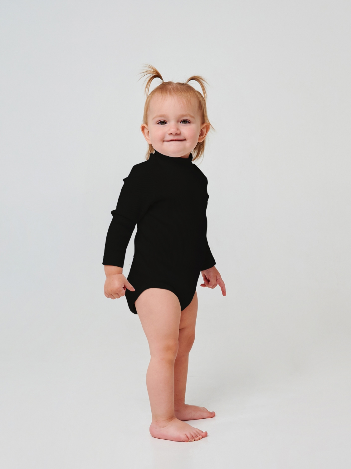 Боді-гольф в універсальному чорному кольорі – стильний та зручний варіант для вашого малюка. М'яке полотно забезпечує комфорт та тепло, а зручні кнопки дозволяють легко одягати та знімати. Ідеально підходить для прохолодних днів та активних ігор!