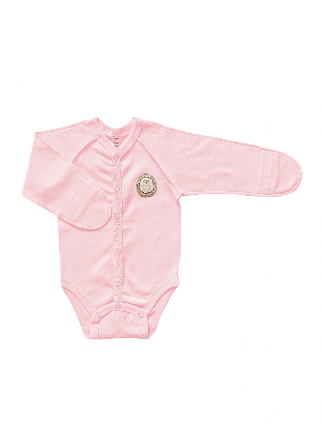 Боді-распах для малюків - ніжність у кожному русі! М'яке полотно інтерлок дбайливе до шкіри малюка, а закриті ручки забезпечують захист і тепло. Зручні кнопки роблять переодягання швидким та легким, а чарівна адгезивна нашивка з їжачком додає милий акцент. Комфорт та стиль для перших миттєвостей життя!