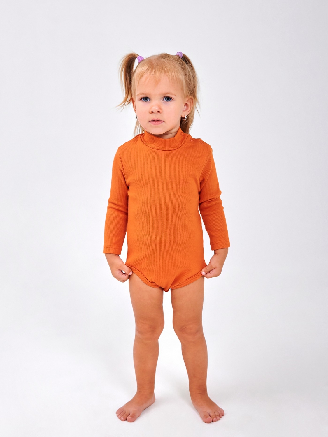 Боді-гольф для малят із кашкорсу. Ніжний, м'який та зручний – створений для найменших модниць. Еластичне полотно дозволяє вільно рухатися, а високий комір захищає від прохолоди. Зручні кнопки внизу роблять перевдягання швидким та простим. Легко комбінується зі спідничками, сарафанами та штанцями.
