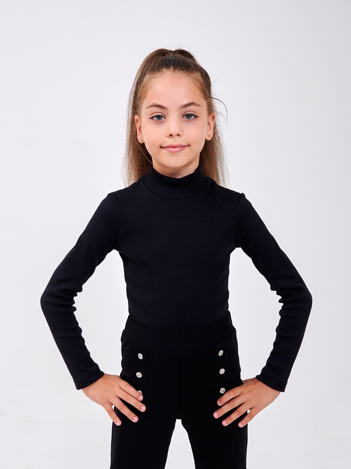 Боді-гольф для дівчинки - ідеальне поєднання затишку та стилю! М'яке еластичне полотно кашкорс дбайливо облягає, не стискаючи рухів і дарує комфорт протягом усього дня. Високий комір захищає від прохолоди, а застібка на кнопки робить перевдягання швидким та зручним. Універсальний базовий варіант для повсякденних образів та для школи. Легко комбінується зі спідницями, брюками та сарафанами.