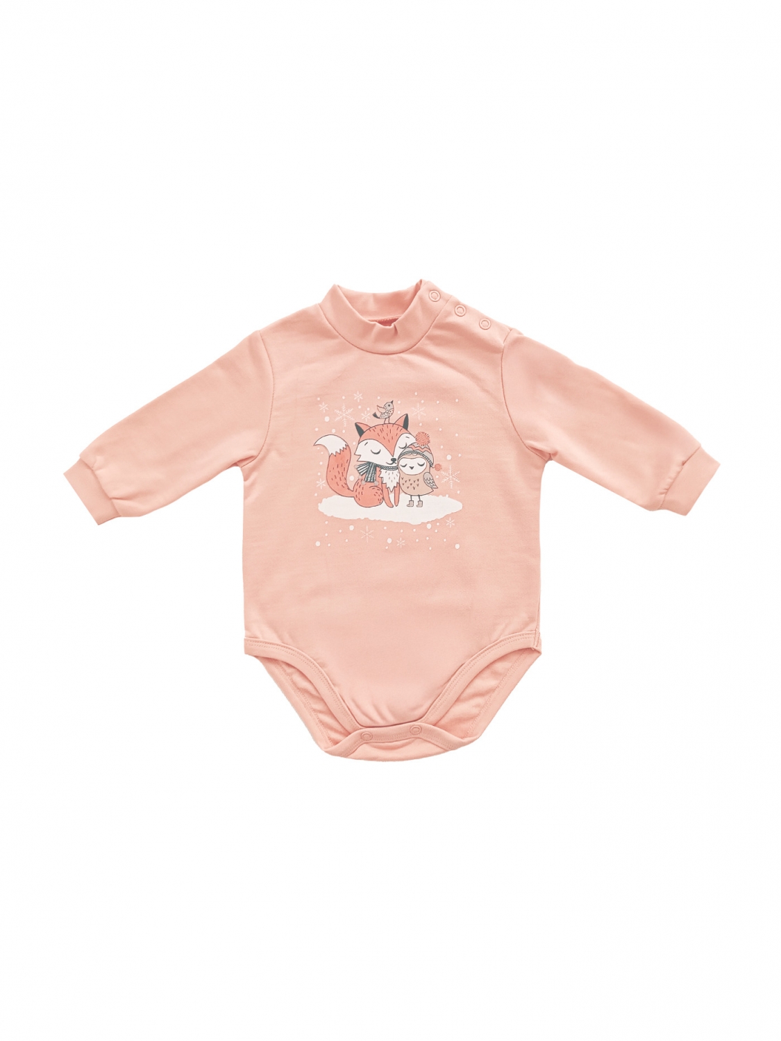 Боді для малюків з футера з начосом - тепле і м'яке, неначе обійми. Полотно футер з начесом надійно зберігає тепло, а зручні кнопочки на плечі і внизу роблять перевдягання легким та швидким. Милий принт додає ніжності та затишку щодня малюка.