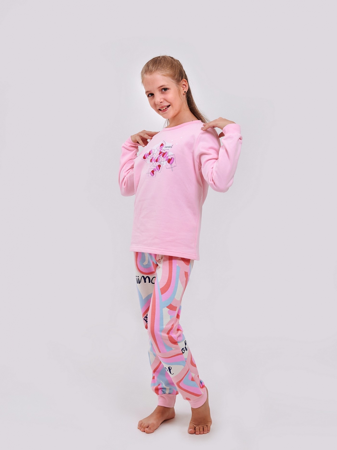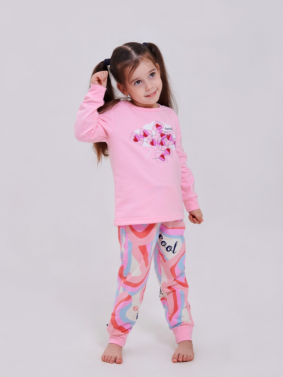 Створіть затишну атмосферу кохання та турботи для вашої маленької принцеси! Дитяча піжама для дівчинки виконана з м'якого футера з начосом, який забезпечить тепло і комфорт навіть у прохолодні ночі. Прямий друк з милими сердечками-цукерками та ніжним написом "Sweet Heart" додасть трохи солодощі щовечора.