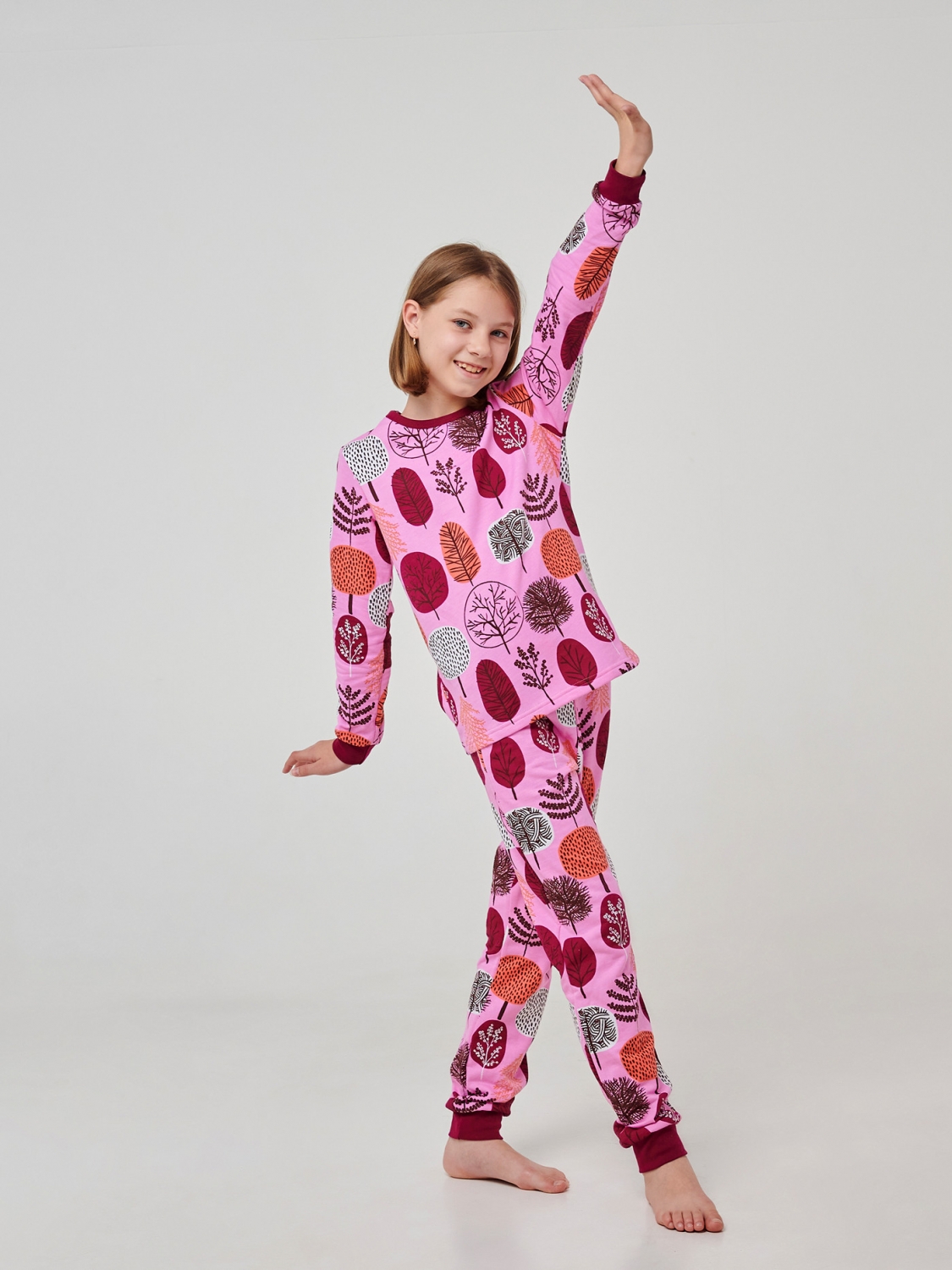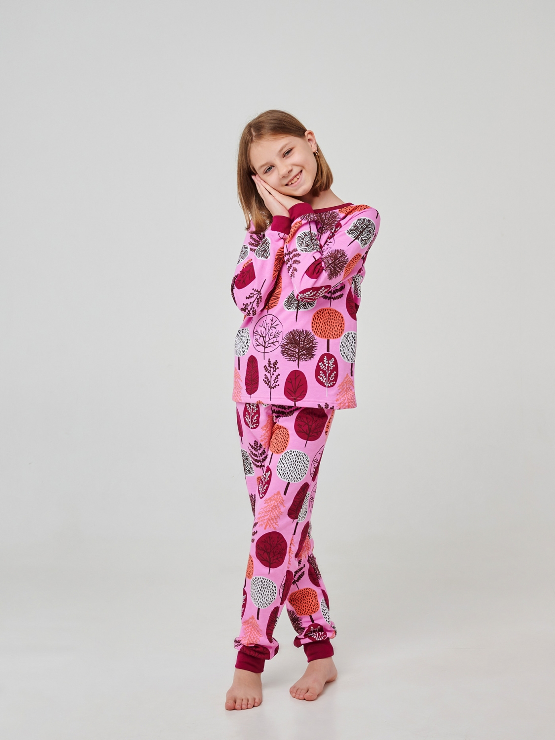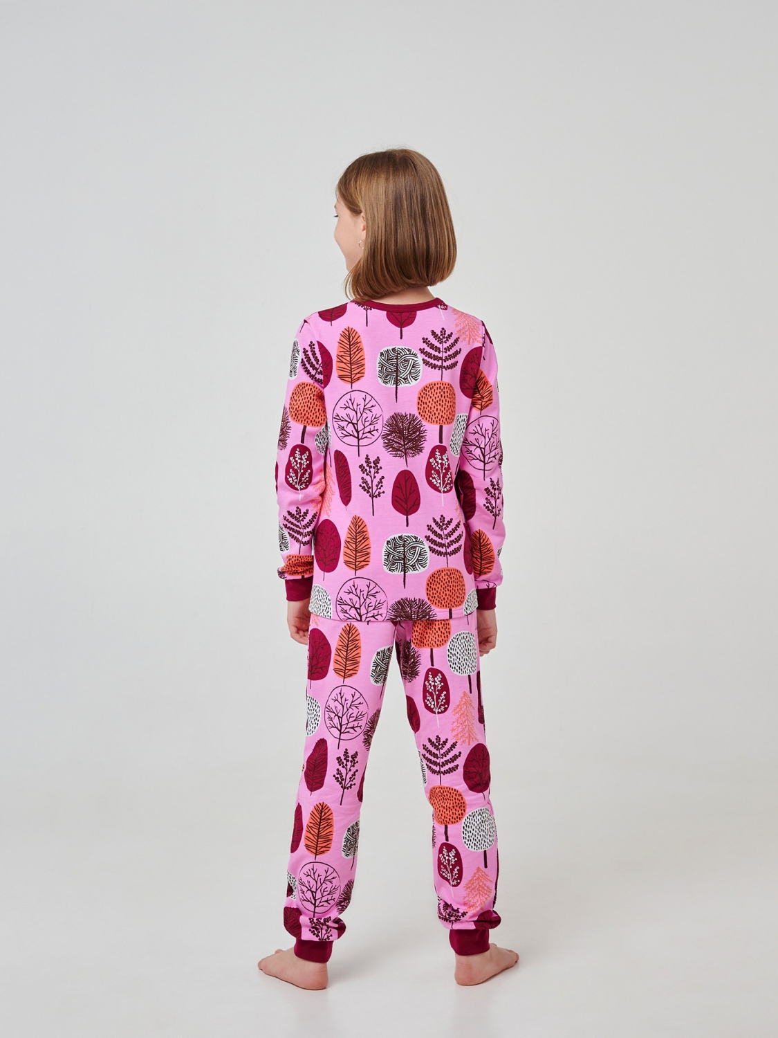 Піжама для дівчаток з ніжним чарівним малюнком казкові осінні дерева на рожевий фон. Ця піжама створена, щоб зігріти вашу доньку в прохолодні осінні вечори та подарувати їй море радості. Полотно футер з начосом забезпечить вашій дівчинці ніжність та тепло в холодні ночі. Крій піжами забезпечить свободу руху та зручність під час сну.