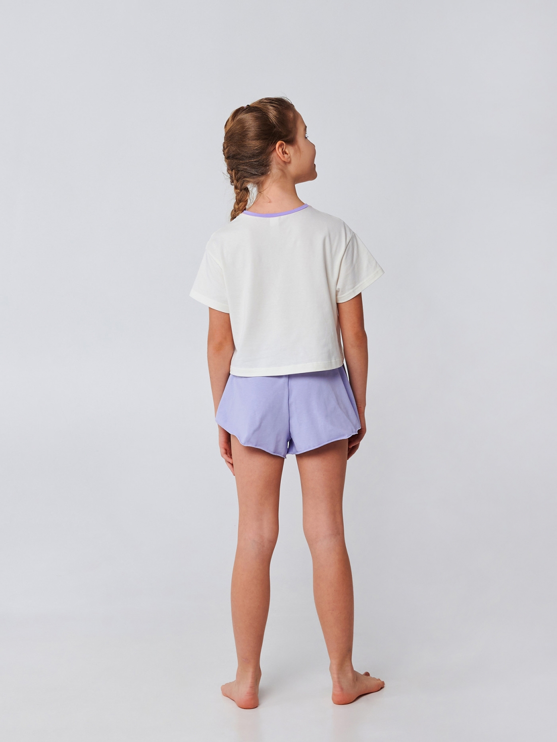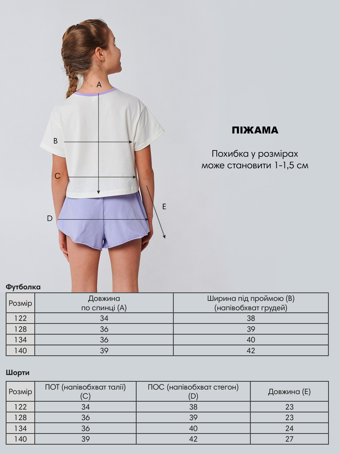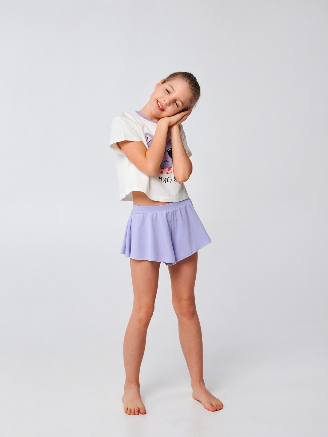 Молочна футболка та волошкові шорти створюють ніжний та свіжий образ. Прямий друк котика в сонячних окулярах і напис 'Too Much Sun' додають піжамі грайливості та створюють атмосферу літніх веселощів. Пошита з м'якого стрейчевого куліра, піжама забезпечить вашій дівчинці максимальний комфорт та свободу руху під час сну чи ігор. Дозвольте вашій маленькій модниці насолоджуватися кожним моментом у затишній та стильній піжамі!