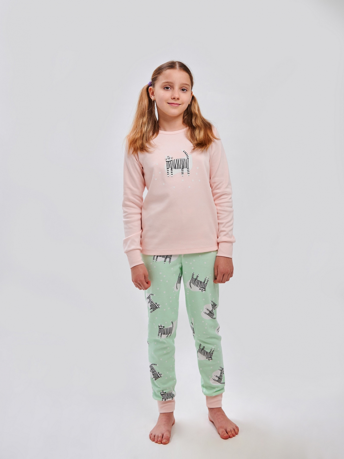 Дитяча піжама для дівчинки | від 92 до 170 | Еластичний та дихаючий інтерлок вищої якості, 100% бавовна | Ідеально на осінь, тепла, приємна на дотик. для дівчинки SMIL 104838 Блідо-рожевий