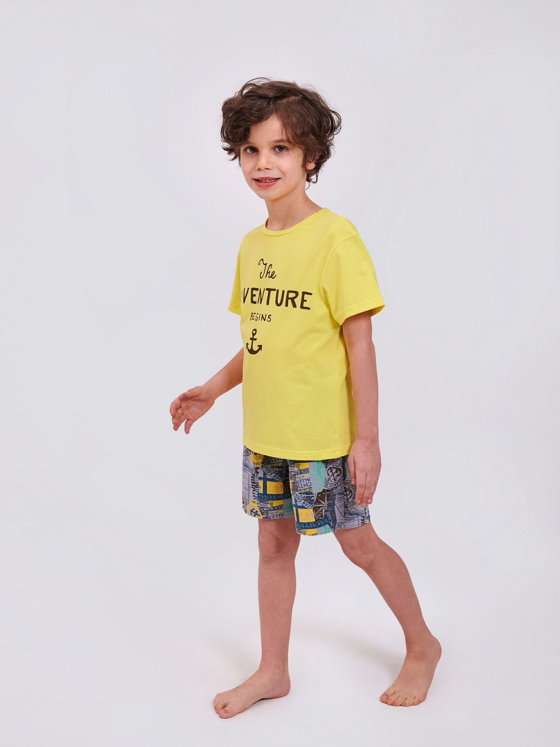 Дитяча піжама для хлопчика | від 122 до 176 розмір | Еластичний та дихаючий стрейч-кулір вищої якості, 95% бавовна | Ідеальна на весну та літо для хлопчика SMIL 104852 Лимонний