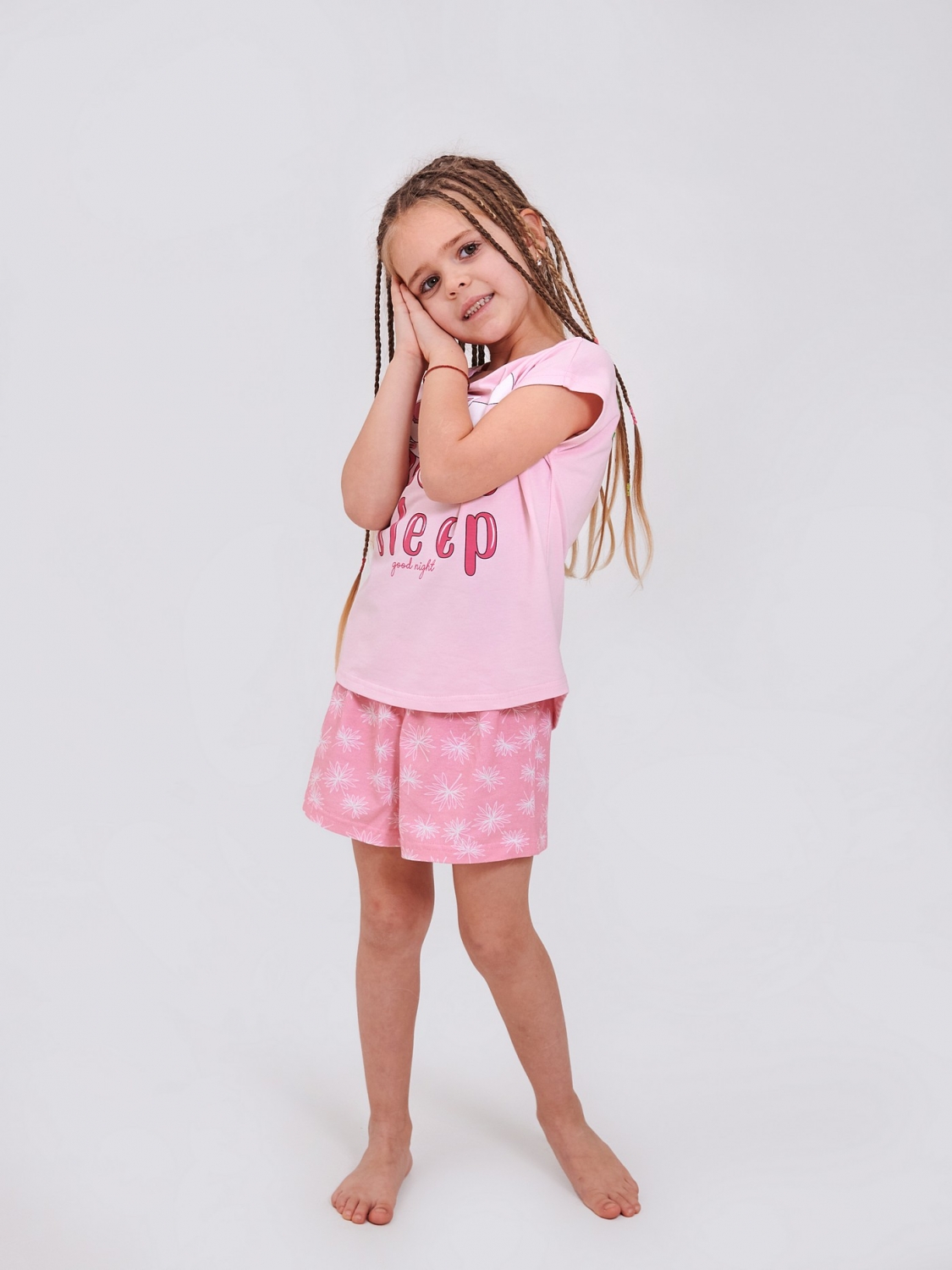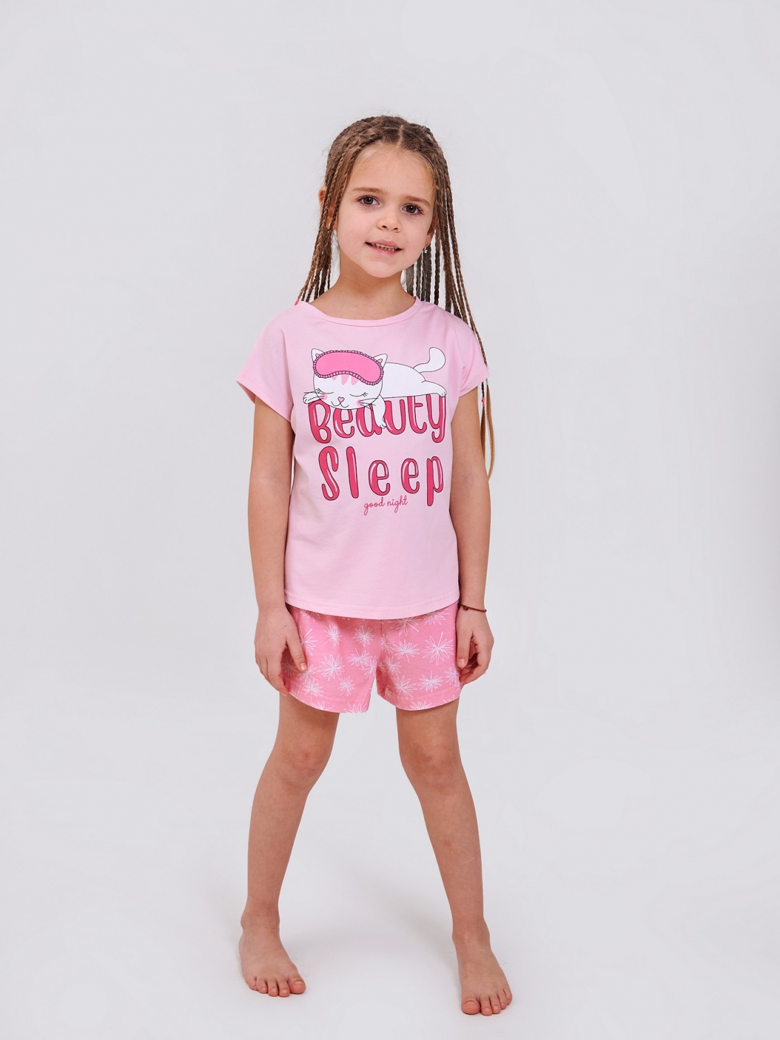 Наймиліший сон у стильній піжамі для дівчинки! Зручна футболка та легкі шортики – комфорт на всю ніч! Прямий друк "Beauty Sleep" і кумедна кішечка - зручно грати, веселитися і солодко засинати! Стрейчеве кулірне полотно – м'якість та легкість для теплих ночей.