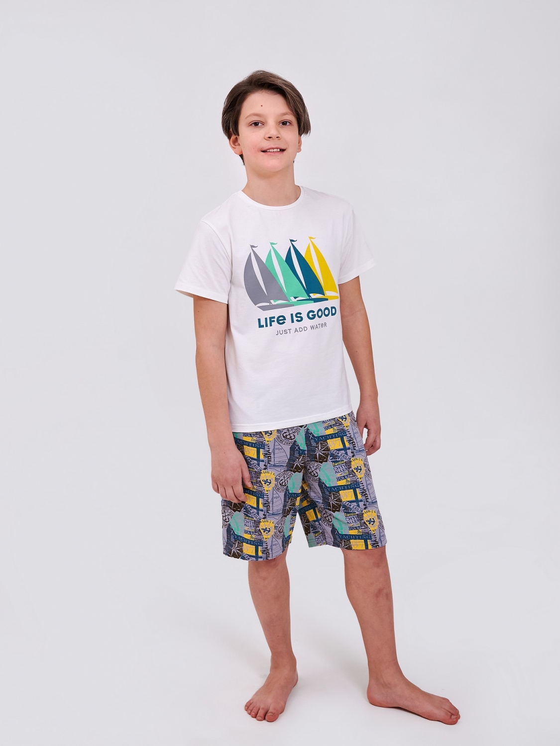 Літня піжама для хлопчика – це комфорт та відмінний настрій! Піжама складається з футболки та шортів - ідеально для сну та активного відпочинку! Прямий друк: напис "Life is Good" - налаштує на позитив з самого ранку! Стрейчевий кулір - м'яке полотно для комфорту навіть у спекотні ночі.