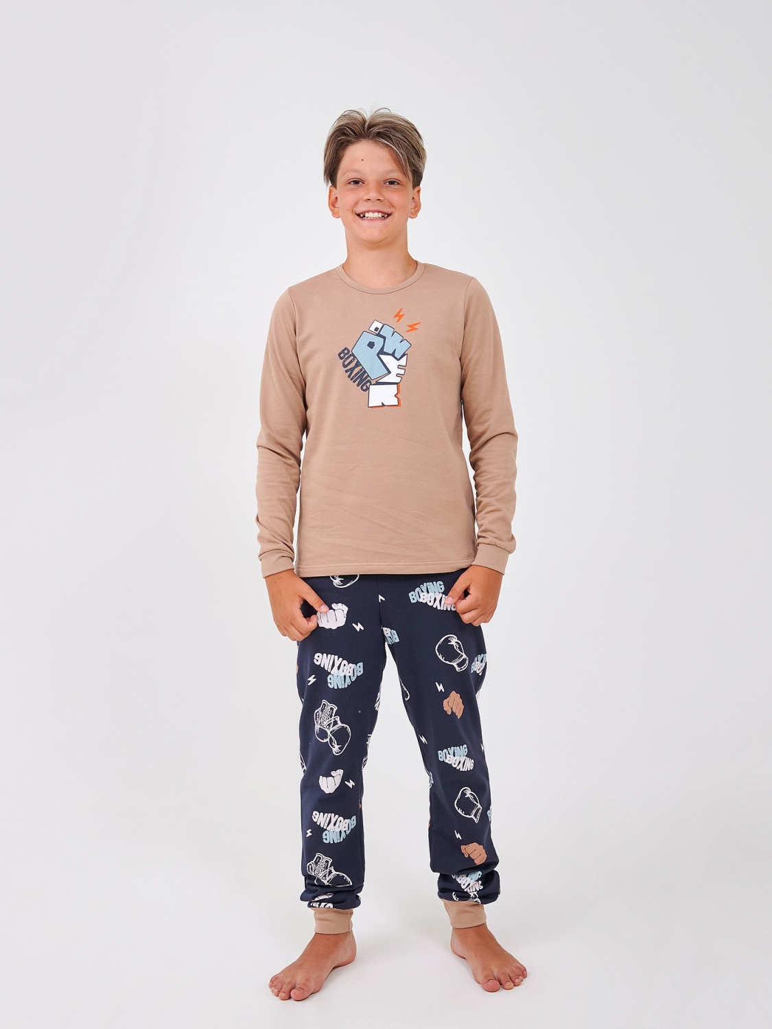 Дитяча піжама з начосом для хлопчика Розмір: від 146 до 176 см 100% cotton Premium футер для хлопчика SMIL 104872-1 Пісочний