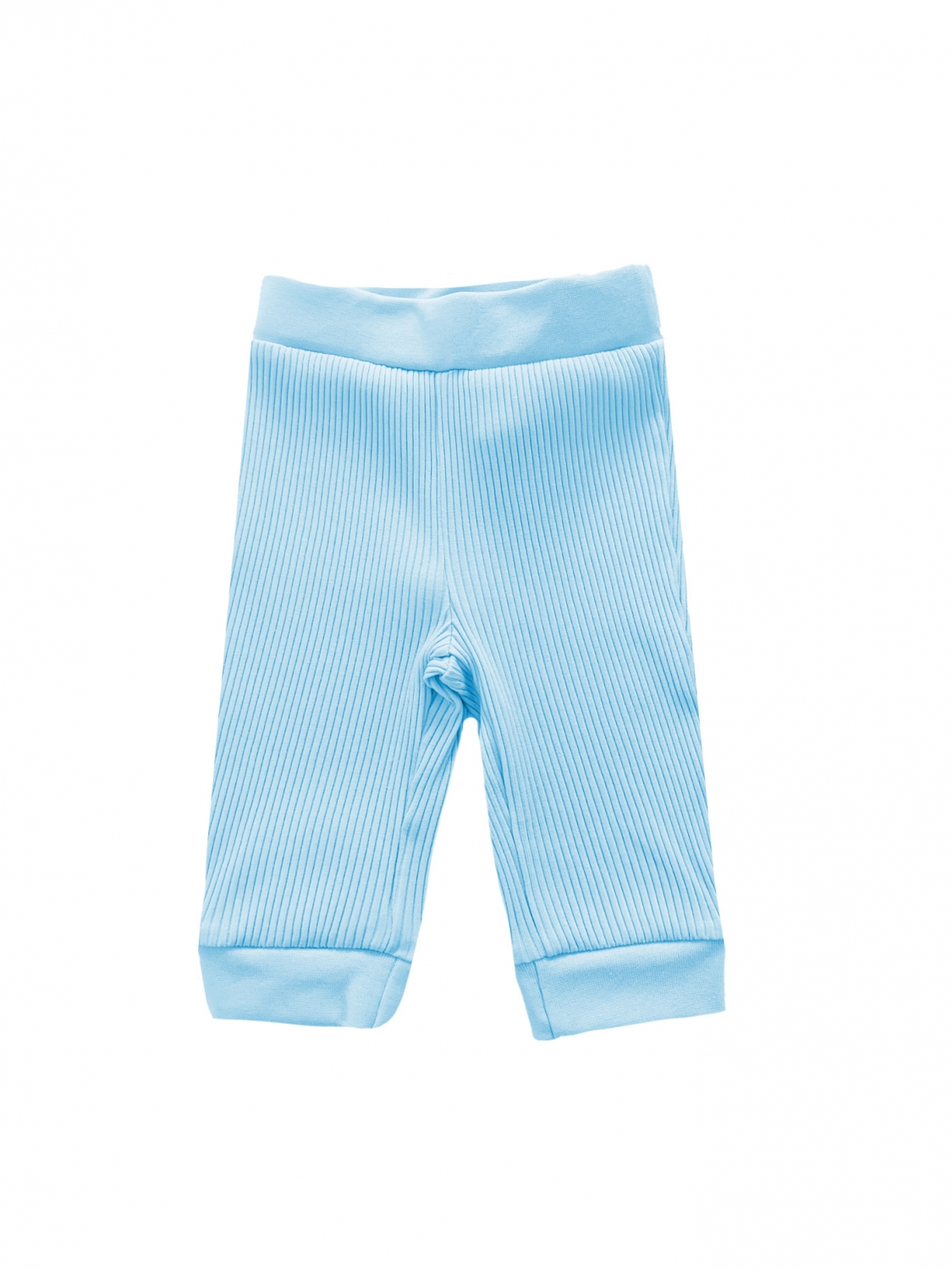 Блакитні штанці з тканини рубчик - це м'якість, яка супроводжує малюка щодня! Еластична гумка на талії забезпечує зручну посадку, не стискаючи животик, а тканина рубчик дарує відчуття легкості та свободи рухів.