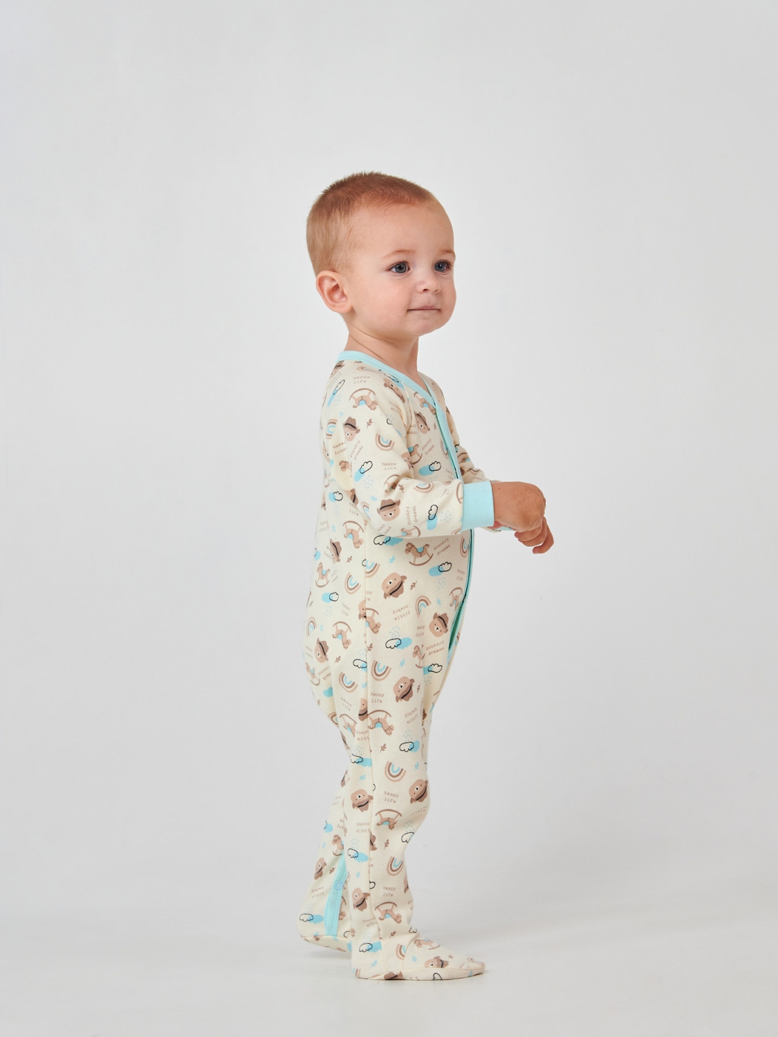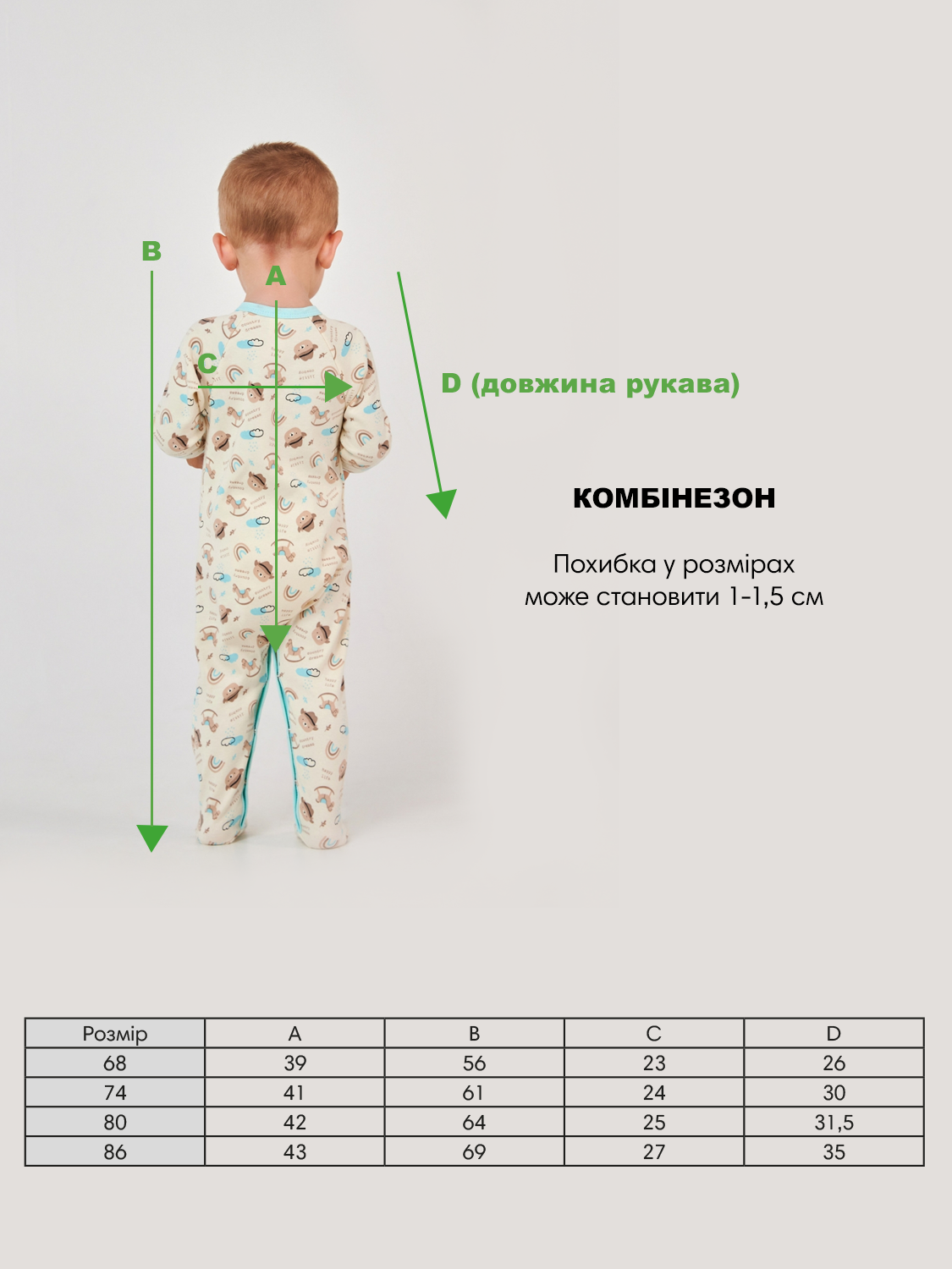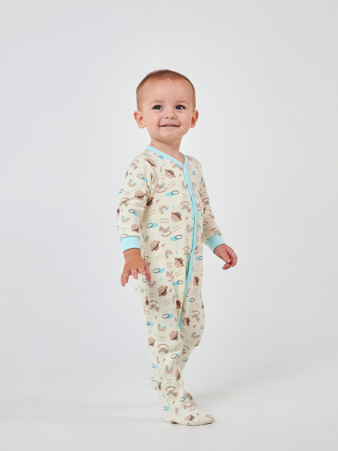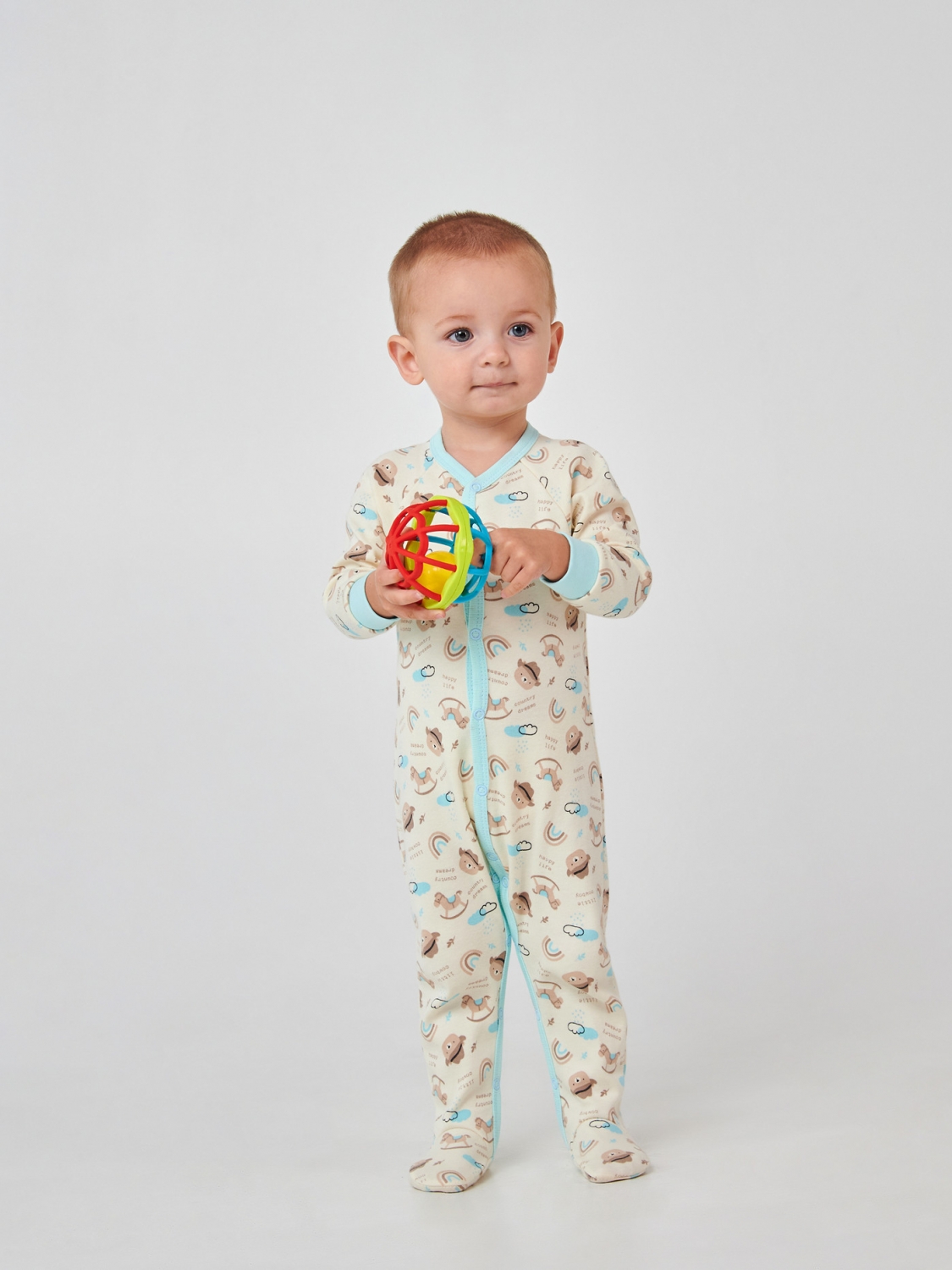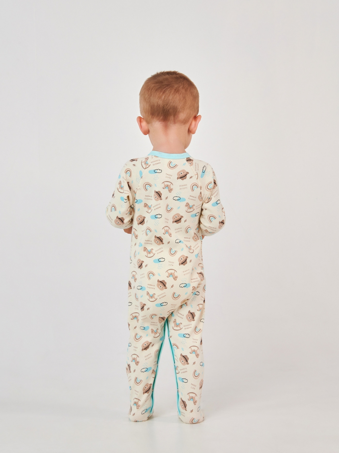 Неповторний малюнок ведмедиків у стилі ковбоїв додає милоти та стилю цьому комбінезону. Закриті ніжки та манжети на ручках забезпечують затишок та тепло у будь-яку погоду. Прості кнопки по всій довжині комбінезону забезпечують легкість при вдяганні та перевдяганні. Комбінація м'яких кольорів та оригінального дизайну робить цей комбінезон неповторним та стильним. Дозвольте вашому малюку досліджувати світ у стилі та комфорті.
