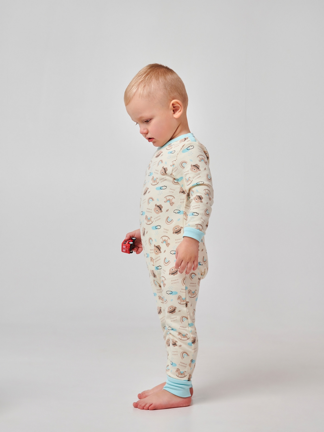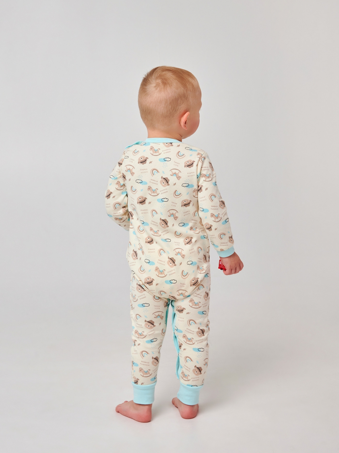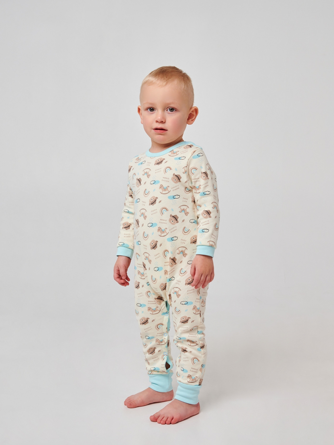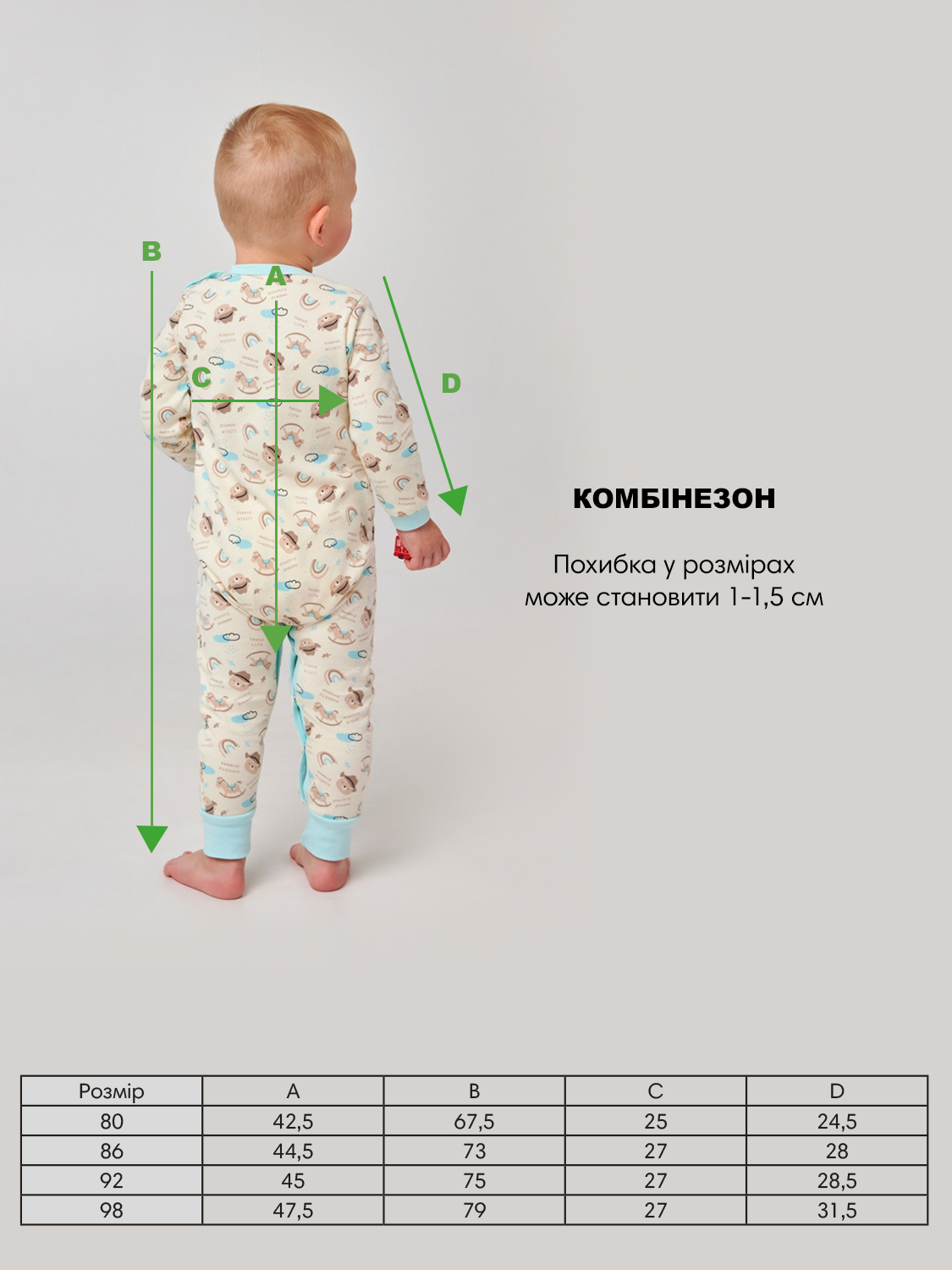 Комбінезон з малюнком сміливих і кумедних ведмедиків-ковбоїв. Малюки будуть у захваті від цих милих ведмедиків, які прикрашають комбінезон. Кнопки на плічці і внизу комбінезону забезпечують легке та зручне одягання та зняття, а також полегшують процес зміни підгузника. Комбінезон пошитий із високоякісного бавовняного полотна інтерлок, яке забезпечує м'якість та безпеку для ніжної шкіри вашого малюка. Подаруйте вашому малюку відчуття комфорту, свободи рухів та радості від яскравих та забавних малюнків.