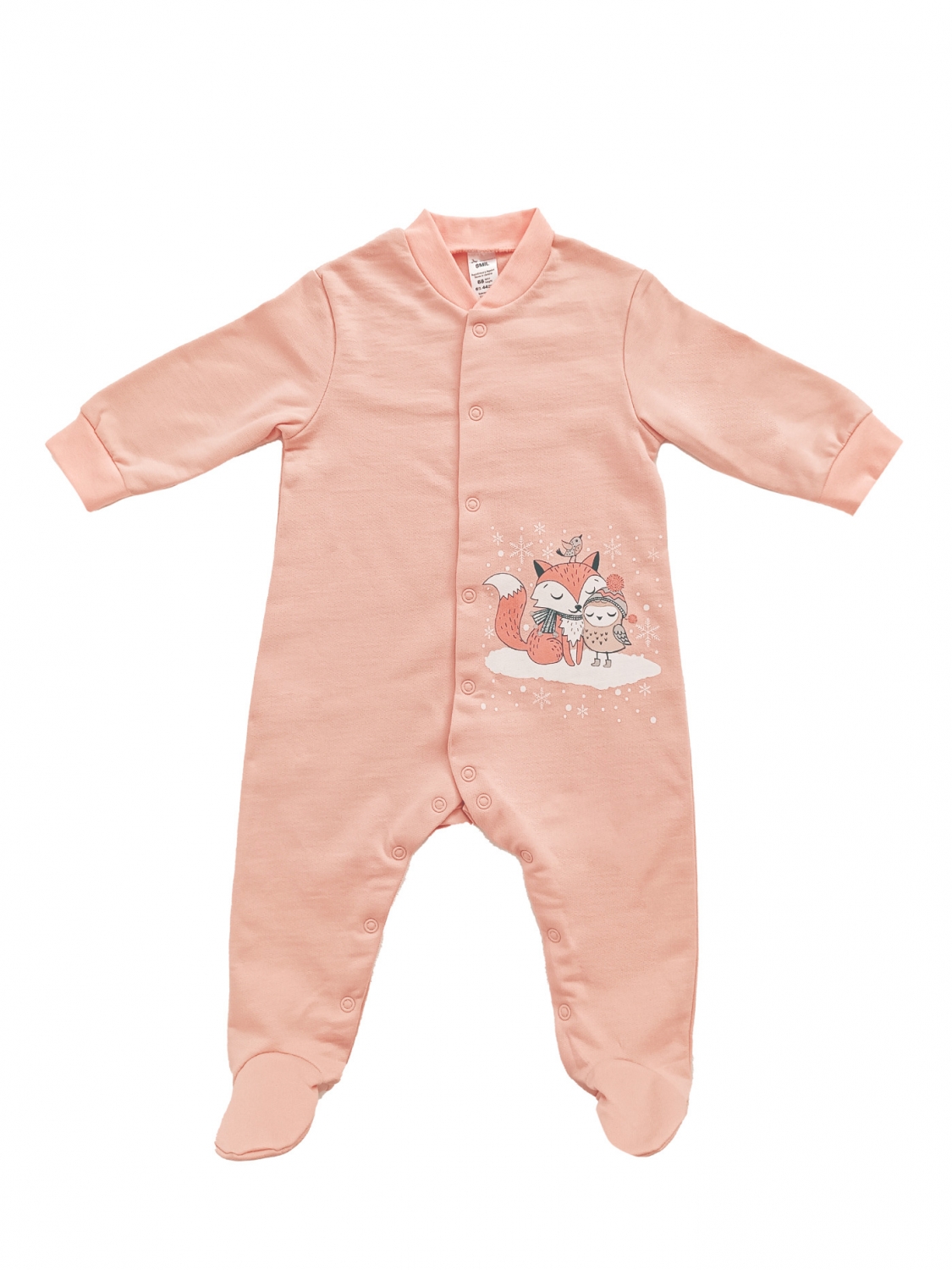 Теплий та зручний комбінезон для малюків на кожен день. М'яке полотно футер з начосом зберігає тепло і дарує комфорт, внутрішні шви акуратні та приємні до тіла, а відкриті ручки забезпечують дитині свободу рухів. Зручна застібка на кнопках по всій довжині полегшує перевдягання. Милий малюнок робить образ особливо ніжним.