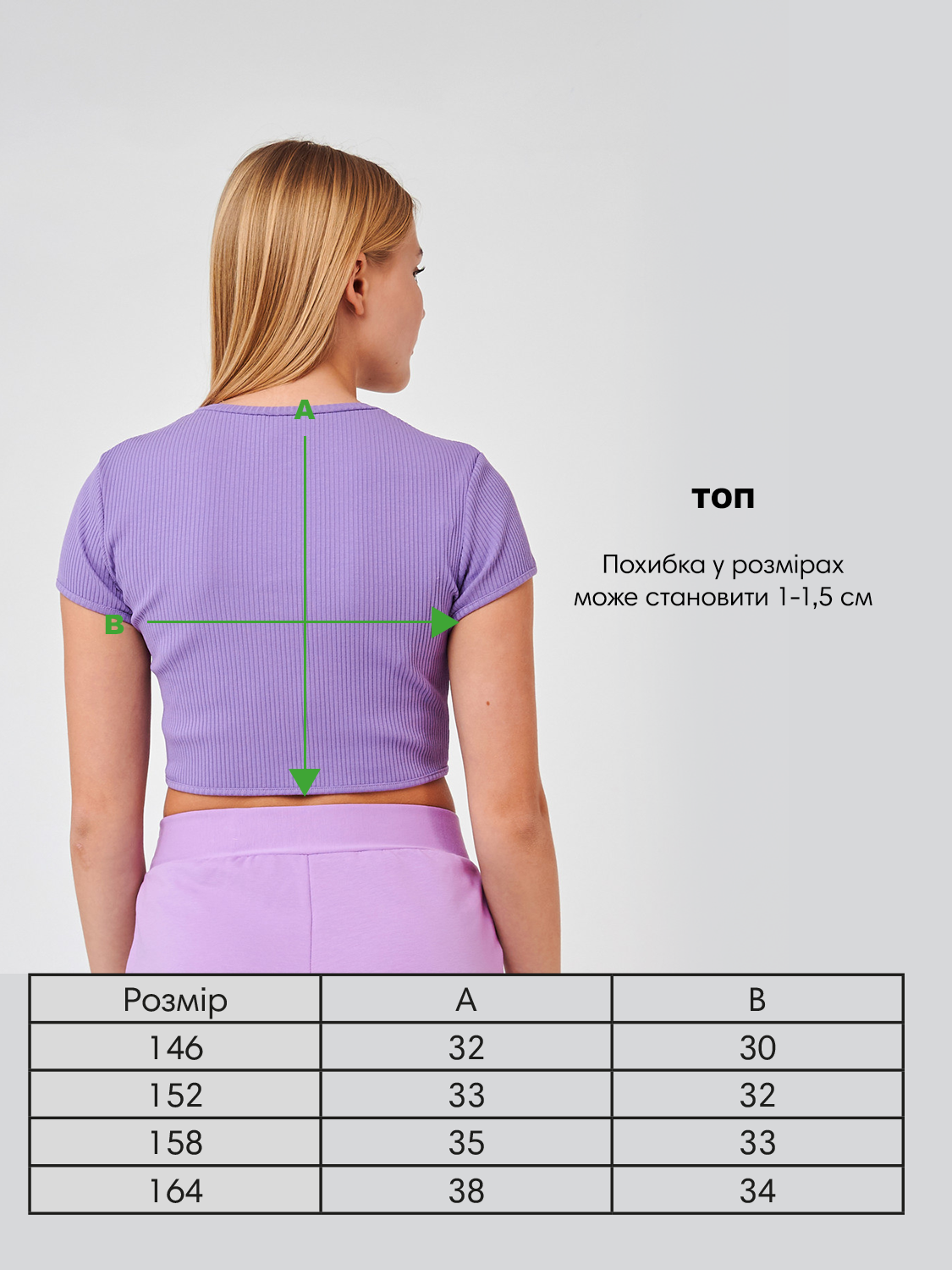Цього сезону стиль і комфорт йдуть рука об руку! Цей топ не схожий на жоден інший! Зав'язування спереду додає оригінальності та робить образ унікальним. Ми дбаємо про те, щоб ваша дівчинка почувалася комфортно в будь-якій ситуації. М'який рубчик забезпечить приємне відчуття на шкірі. Ідеальний вибір для весняних та літніх днів. Топ забезпечує чудову вентиляцію, не сковуючи руху. Наш топ із затяжкою - це не просто одяг, це вираз стилю вашої маленької модниці.