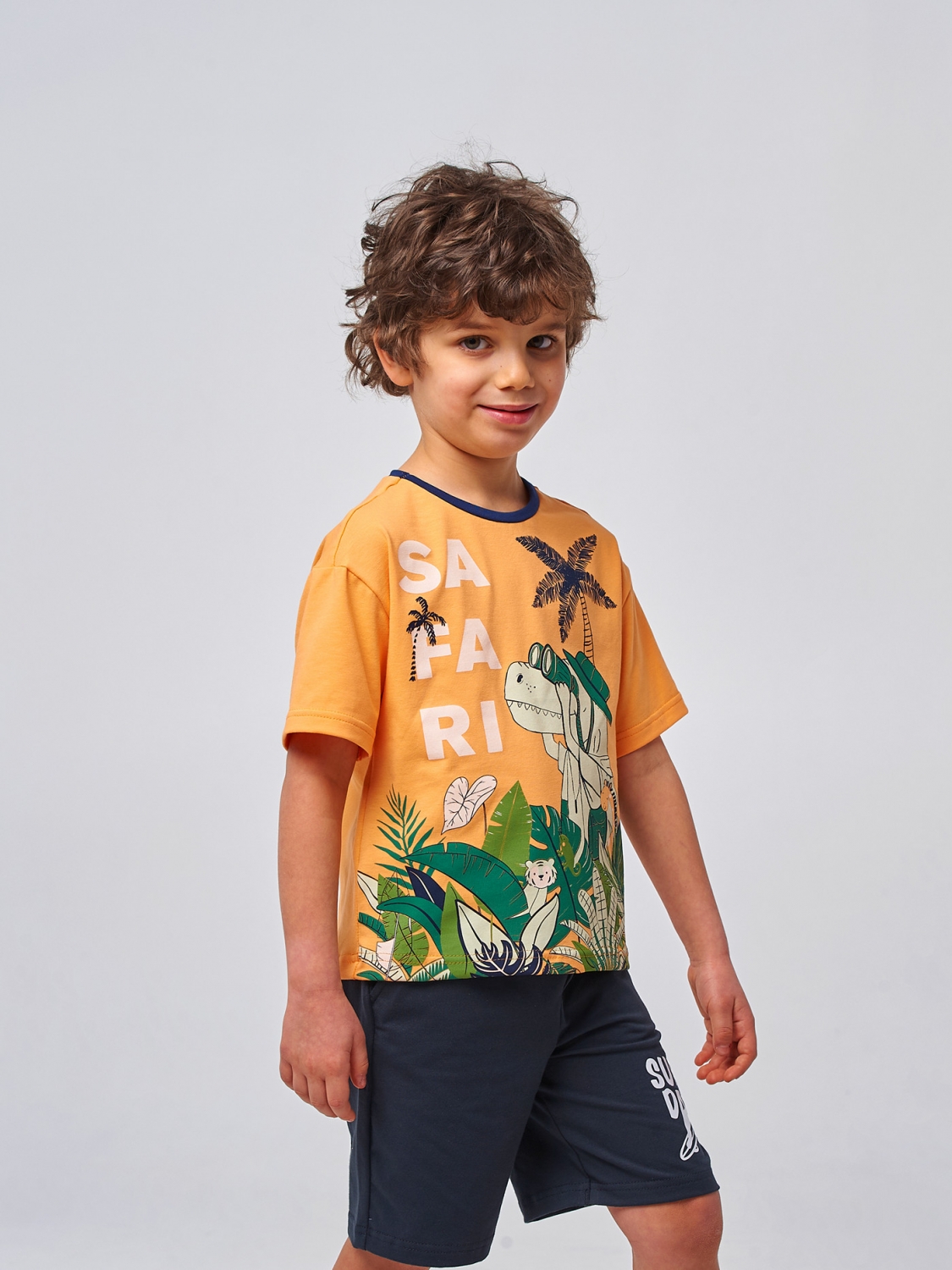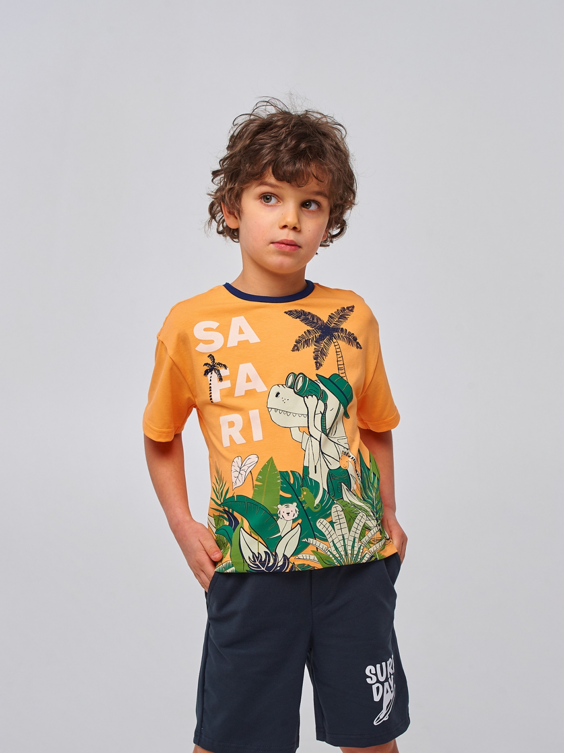 Дозвольте вашому хлопчику відчути себе справжнім дослідником у цій стильній та зручній футболці. Пошита зі стрейчевого куліра, наша футболка забезпечує максимальний комфорт та свободу руху для вашого маленького дослідника у спекотні літні дні. Прямий друк крокодила в джунглях створює захоплюючий образ і надихає на нові пригоди, а напис 'Safari' запрошує у подорож екзотичними місцями.
