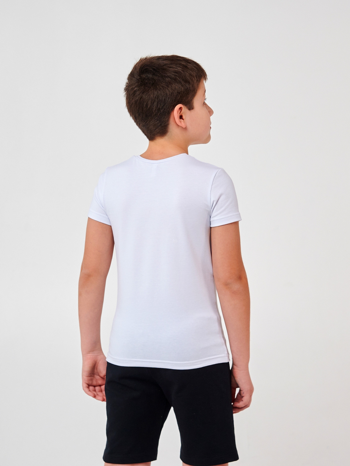 Стрейчовий кулір забезпечує максимальну свободу руху. Ця футболка не обмежить хлопчика, а підтримає його у кожному виді спорту. Не має значення, чи грає він у футбол, бігає по двору чи займається велоспортом — ця футболка створена, щоб бути з ним скрізь. Білий колір ідеально підійде під будь-який низ.