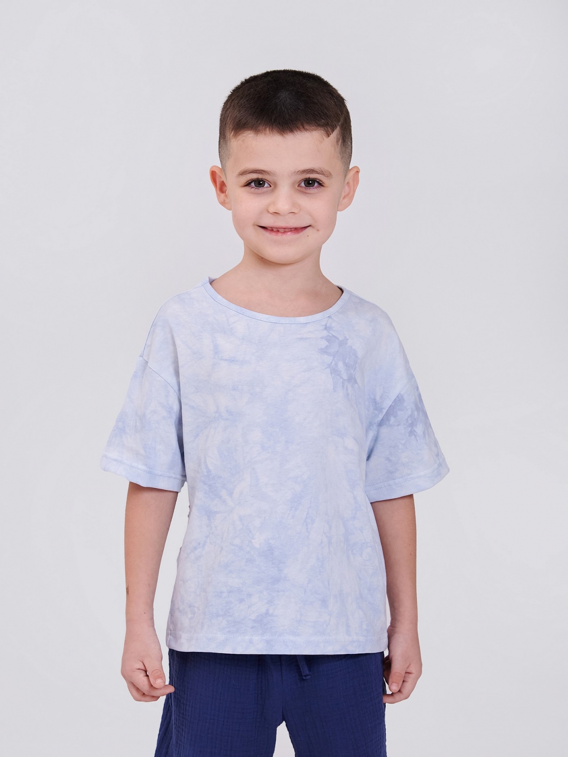 Ніжно-блакитна футболка для хлопчиків та дівчаток – ідеальний вибір для теплих днів! Легке та дихаюче кулірне полотно забезпечує комфорт на весь день. Універсальний дизайн підходить і для прогулянок, і відпочинку. 100% бавовна - м'якість і турбота про шкіру вашої дитини.