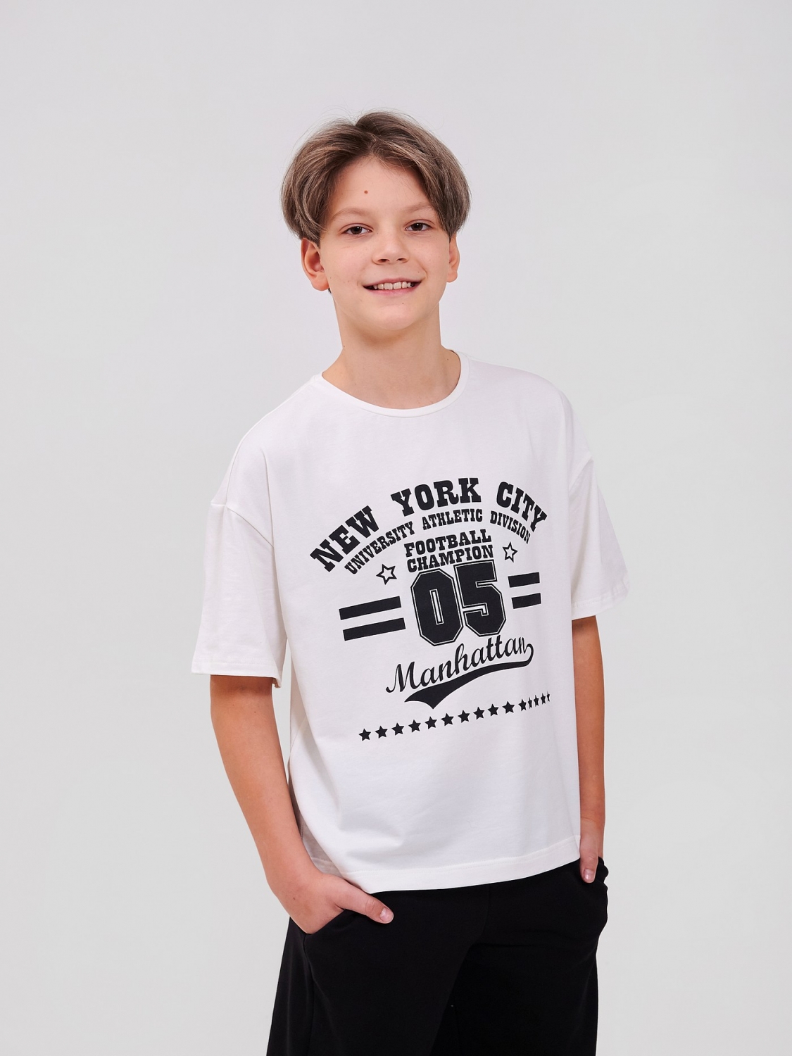 Дитяча футболка для хлопчика | з 122 по 164 | Стрейч-кулір найвищої якості | 95% бавовна для хлопчика SMIL 110846 Молочний