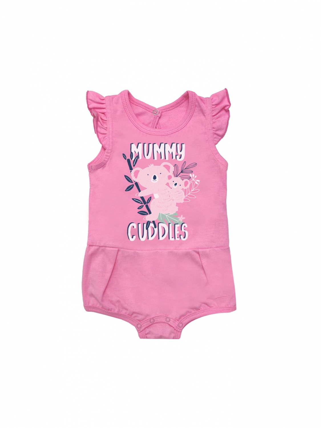 Дуже милий пісочник малинового кольору розрахований на дівчаток у віці від 6 до 18 місяців. Виріб виконаний з якісного бавовняного матеріалу - кулір, який не перешкоджає повітрообміну. Пісочник прикрашений яскравим принтом у вигляді пари коал і рюшами. Застібається виріб на кнопки, розташовані між ніжок і на спині. Пісочник розрахований на щоденну носку.