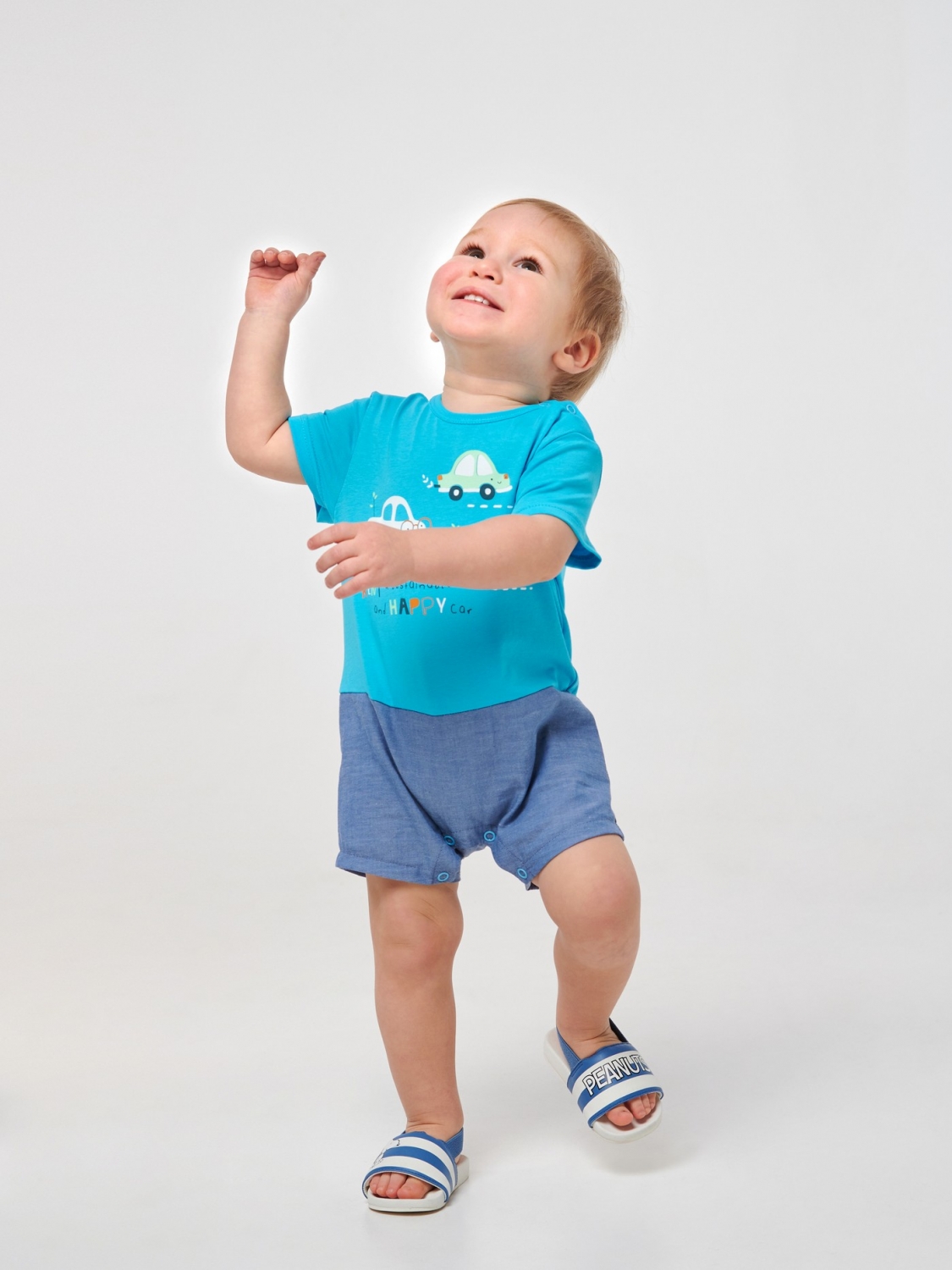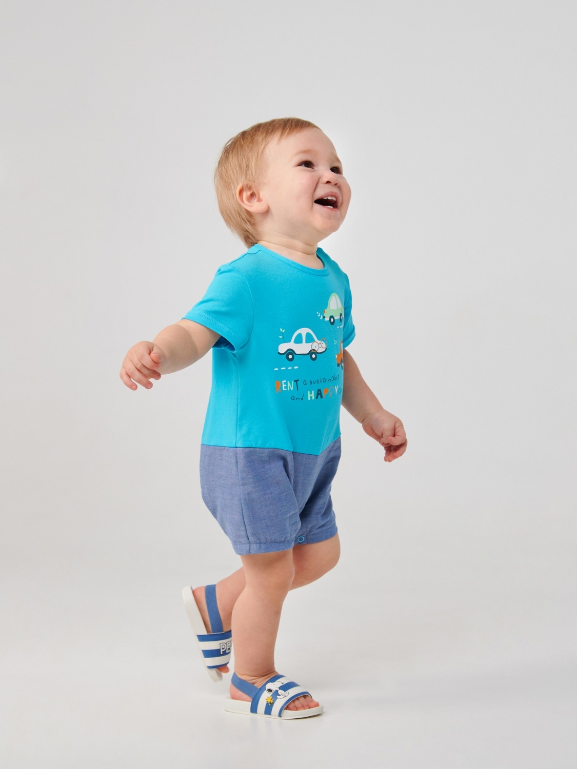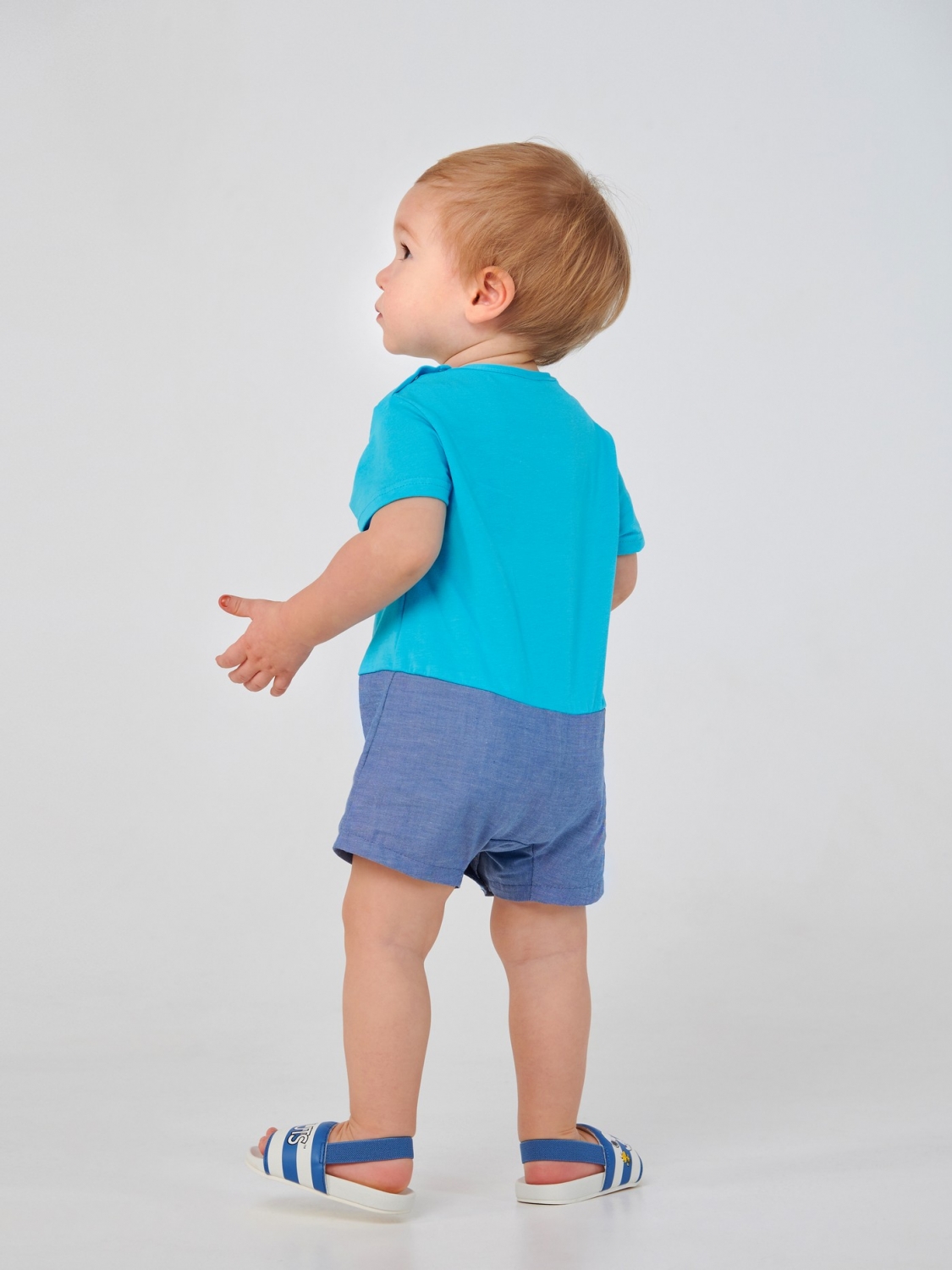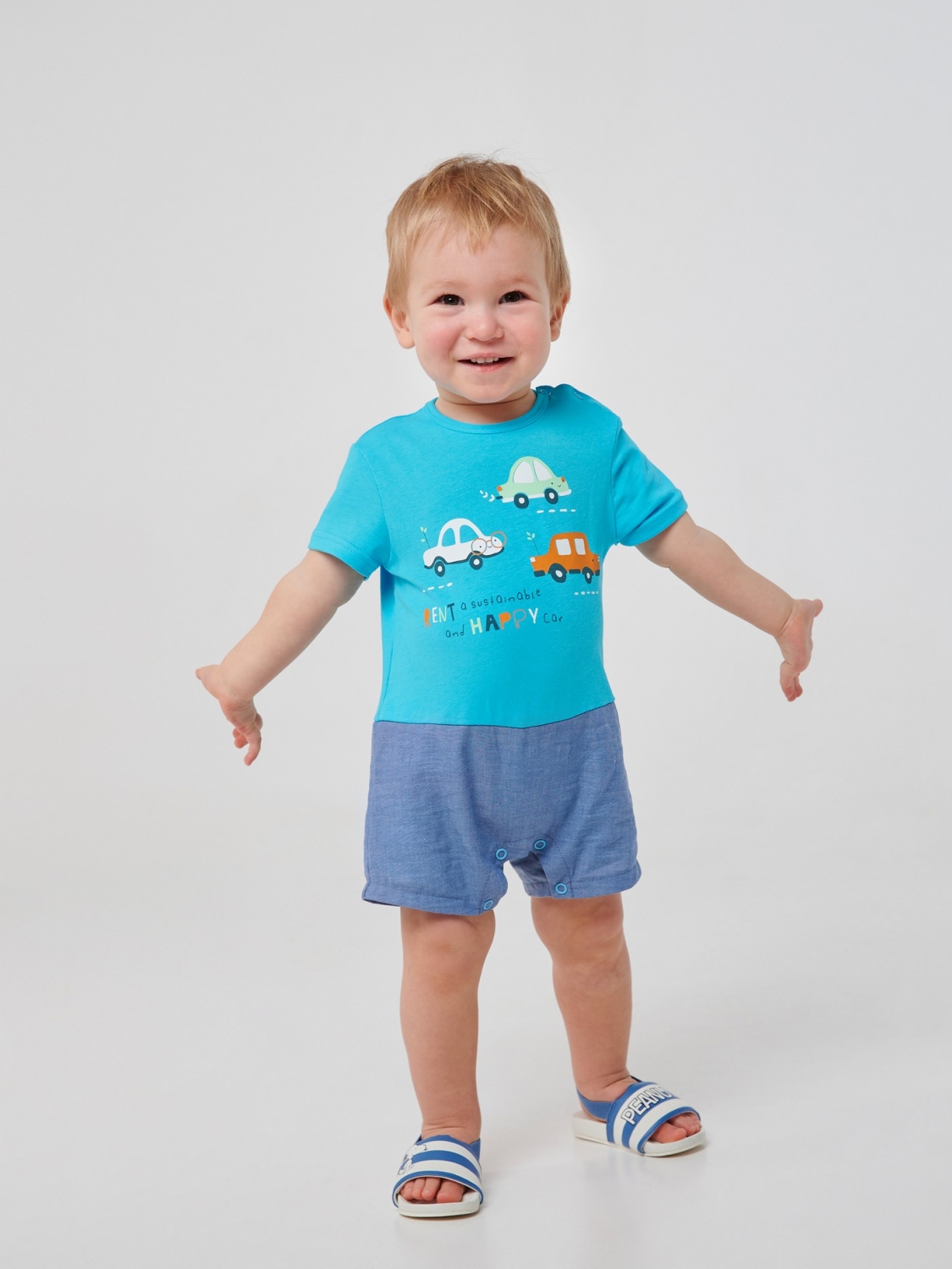 Комфортний пісочник для малюка. У його пошитті використаний бавовняний матеріал – стрейчевий кулір. Він не тільки добре тягнеться, але також легкий і приємний на дотик. Виріб застібається на кнопки, які розташовані на плечі та між ніжками. Спереду на пісочник методом прямого друку нанесено принт.